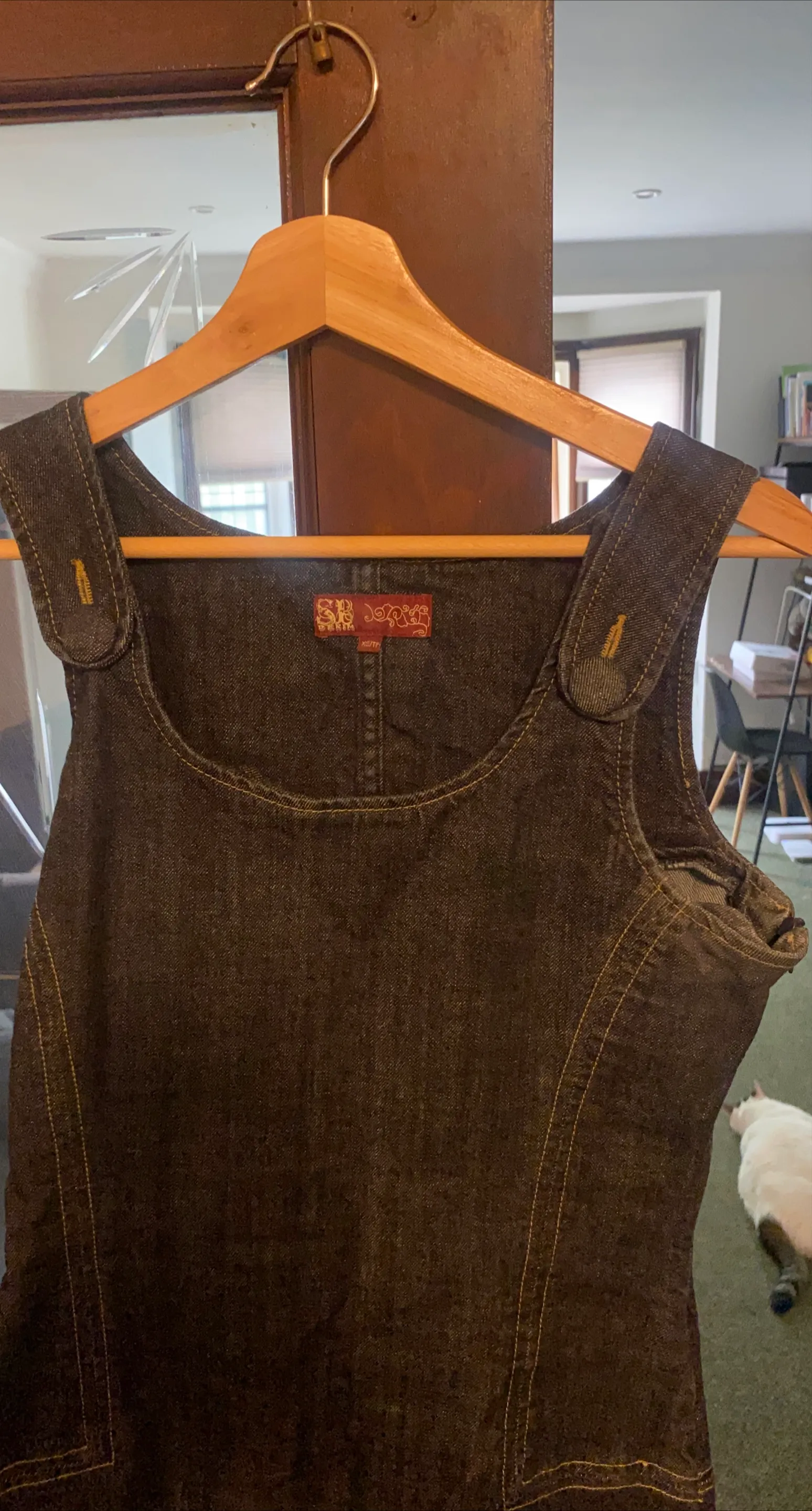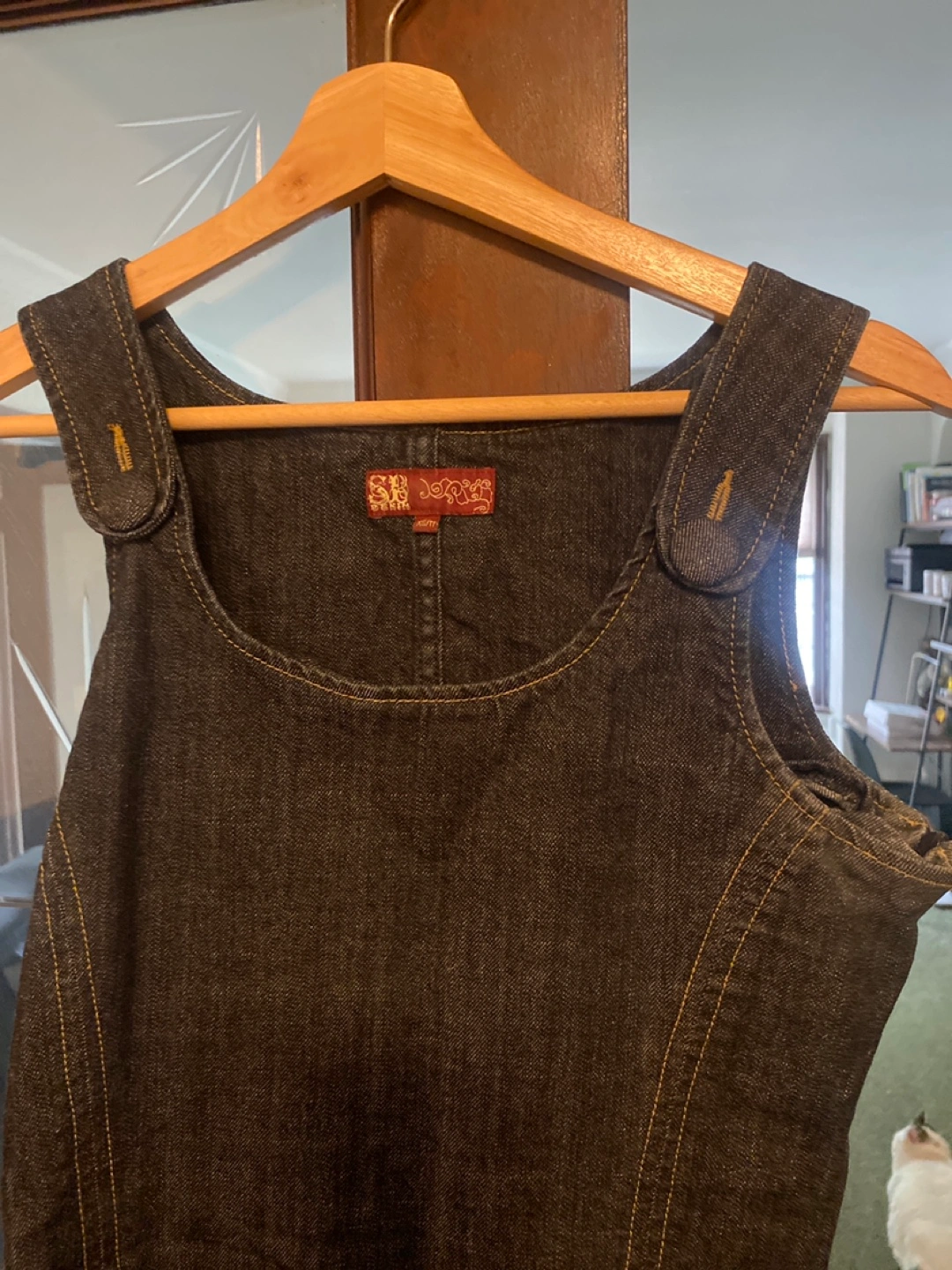 Here's a cute denim jumper dress! It's a size small and in great condition. Perfect for layering or wearing on its own. The brand is 'd jeans'