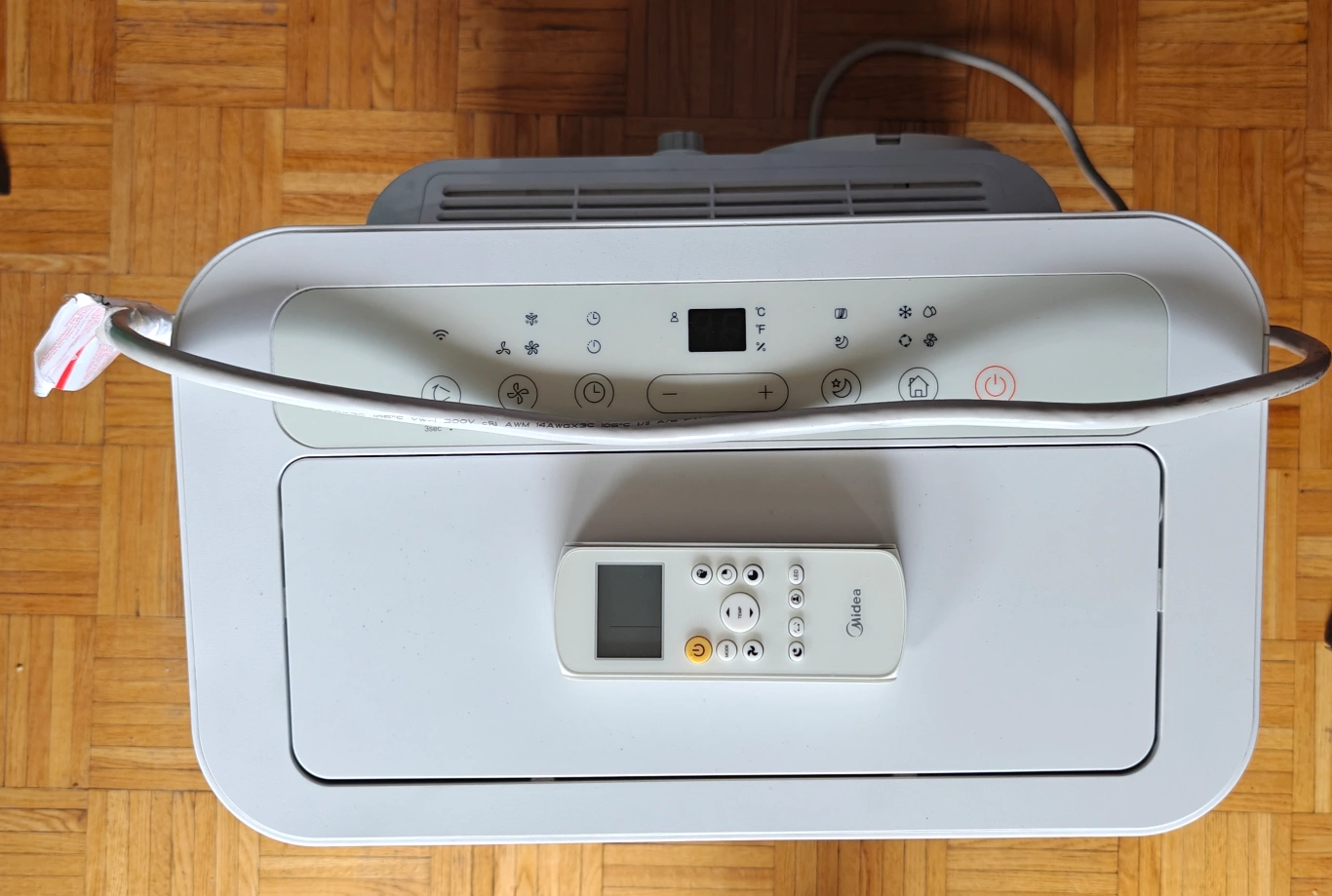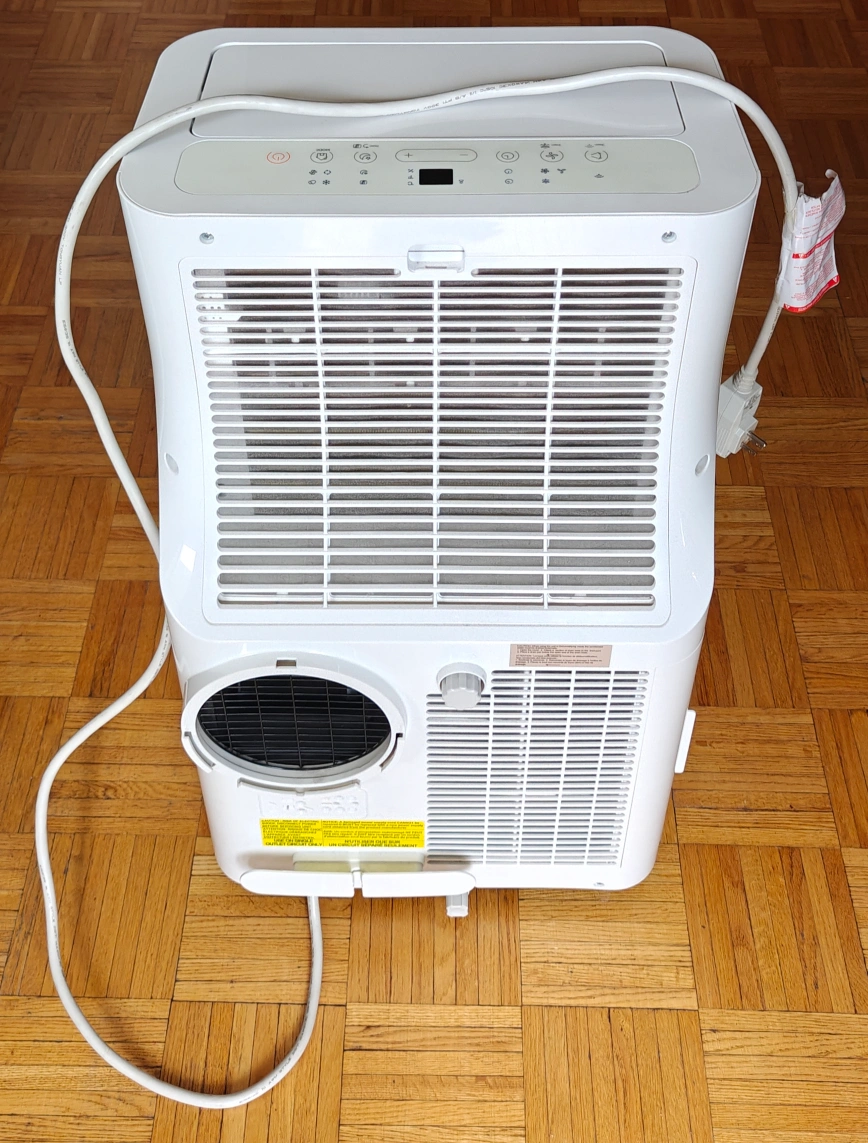 The unit has only been used for 2 summers and is in good condition. Exhaust hose with window attachment and remote control are included.