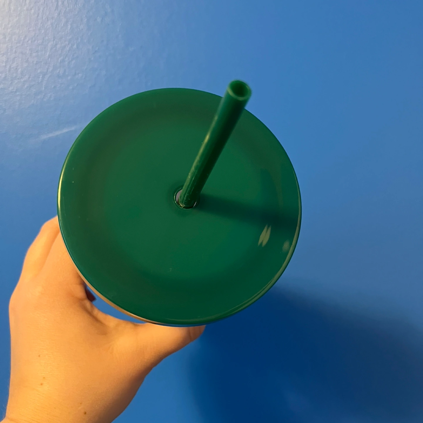 Excellent condition, with the exception of some scrapes on straw. Does not affect performance. Very similar to Starbucks tumbler - this company has partnered with Starbucks in the past! Fun, colourful spring item.