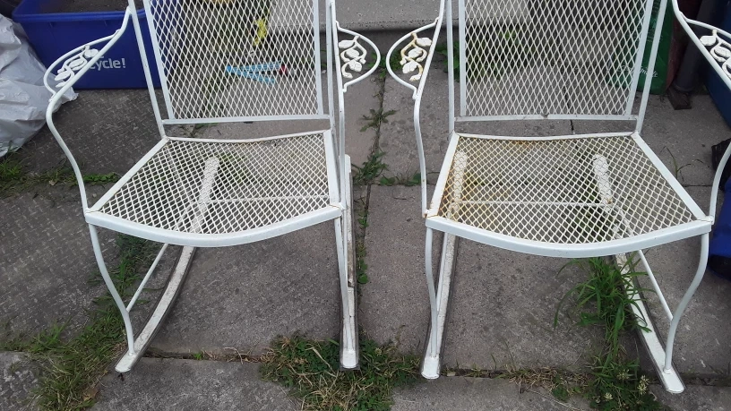 homemade steel rocking chairs outdoor. they need a new coat of paint but are in excellent condition asking 25 a piece negotiable.