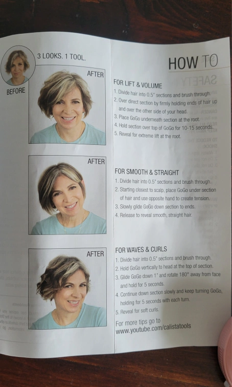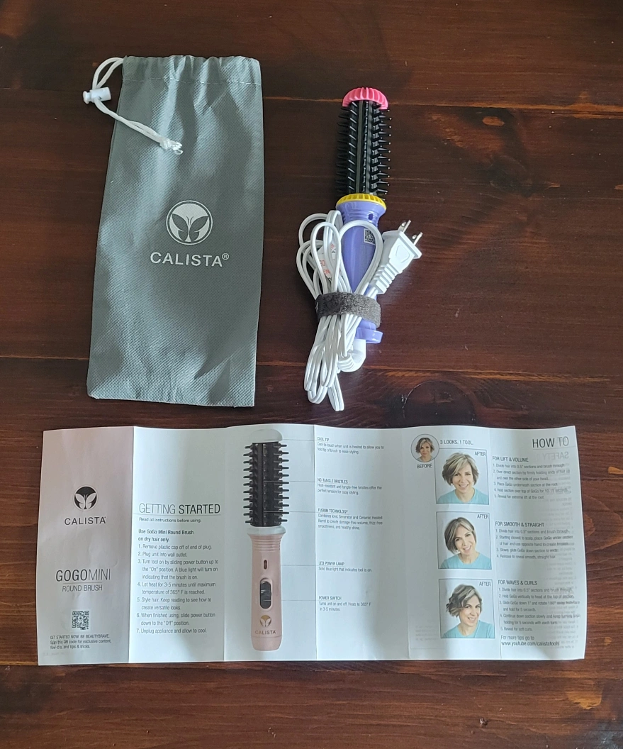 Selling a never-used Calista GoGo Mini Round Brush. It features fusion technology that combines an ionic generator and ceramic heated barrel to create damage-free volume, frizz-free smoothness, and healthy shine. The cool tip allows you to hold the tip of the brush when the unit is heated for styling. It also has no-tangle bristles and a power switch that turns the unit on and off and heats to 365°F in 3-5 minutes.