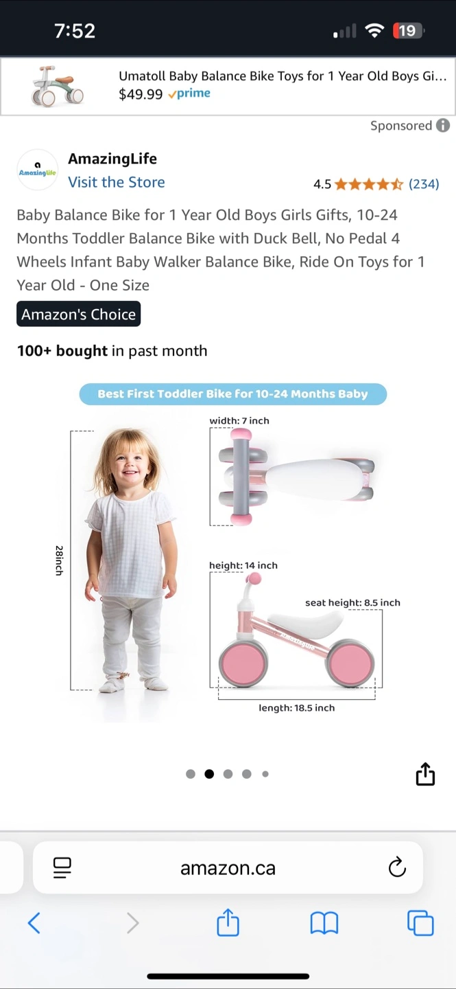 142This AmazingLife baby balance bike is brand new in its original box! It's designed for little ones aged 10-24 months. The bike features a cute duck bell and a four-wheel design for added stability. It's a great way for your child to learn balance and coordination. The box is included!