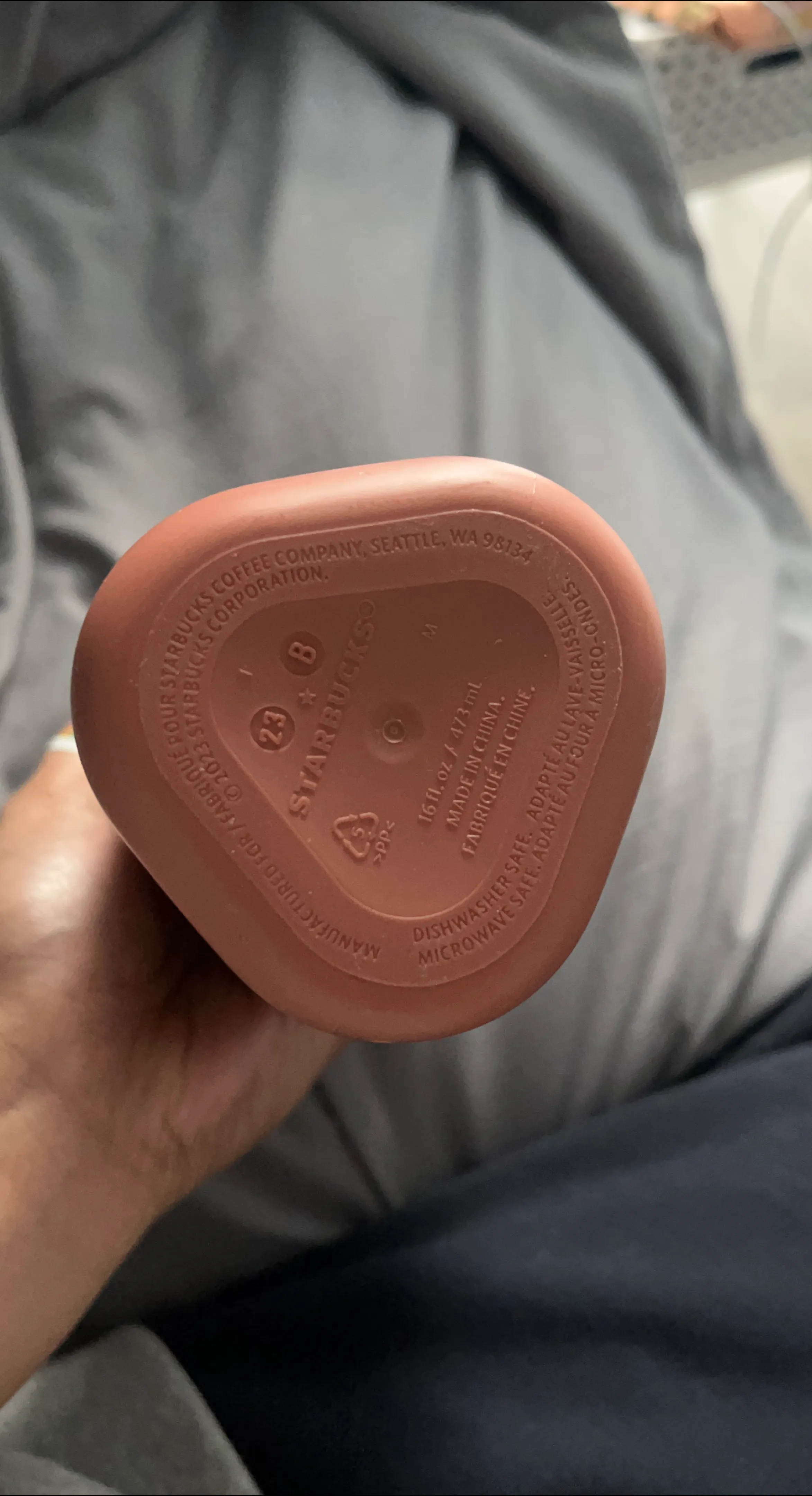 Selling a Starbucks tumbler made from 100% recycled plastic! It holds 16 fl oz / 473 mL and is dishwasher and microwave safe