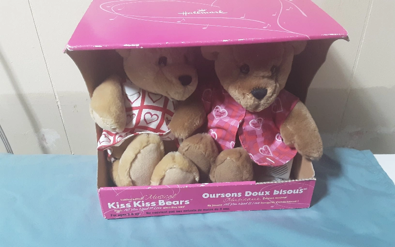 hallmark kiss kiss bears 1997 special edition sings all you need is love by the beatles box is worn Bears are in great condition Battery operated works