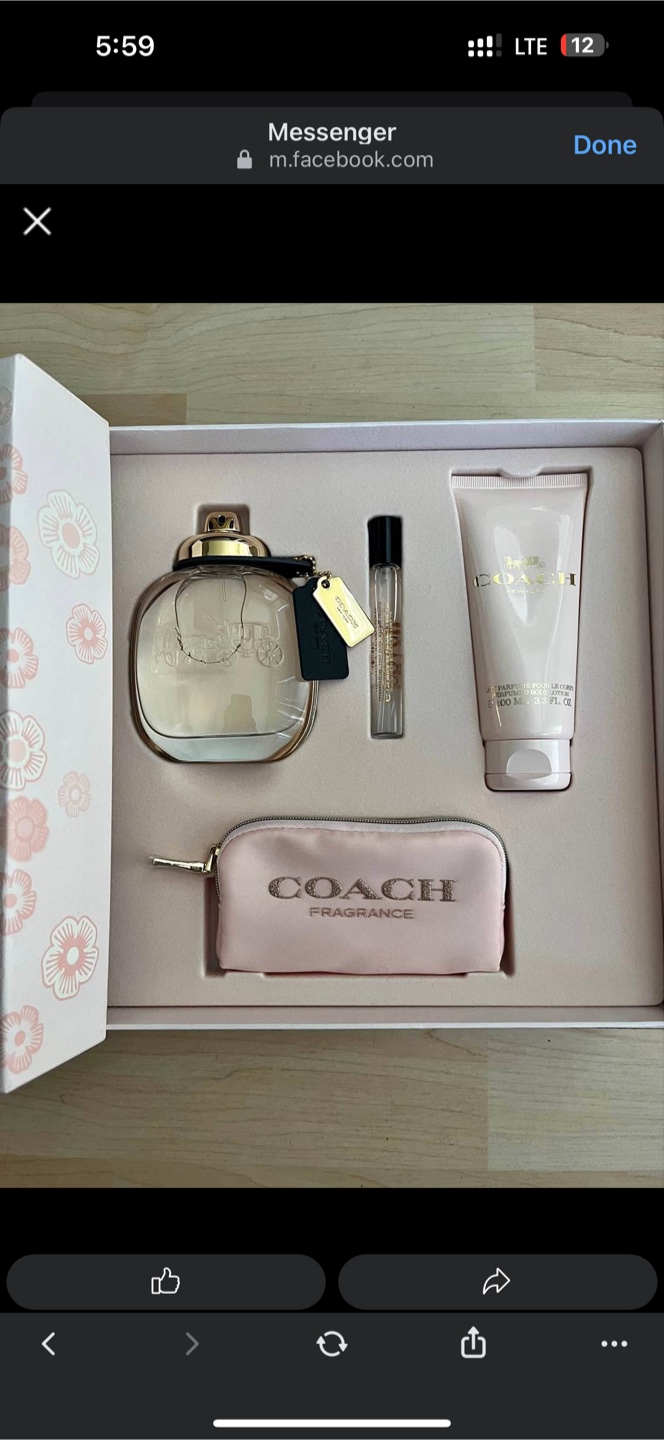 Contains: 90ml bottle of perfume, 7.5ml travel size perfume, 100ml lotion and small toiletries bag