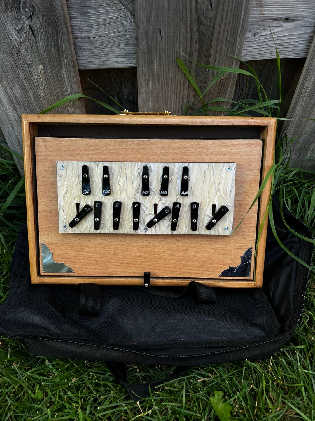 Selling a wooden Shruti box, perfect for musical exploration! It comes with a convenient carrying case, making it easy to transport and store. The box features a variety of buttons, each producing a unique sound. It's in great condition and ready for a new home!