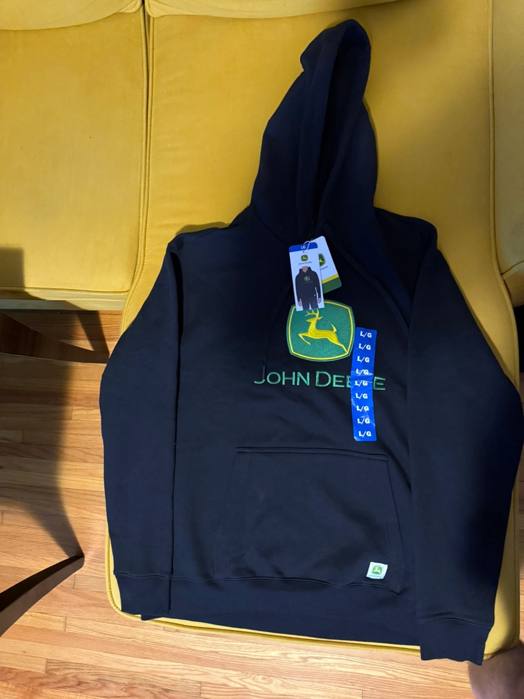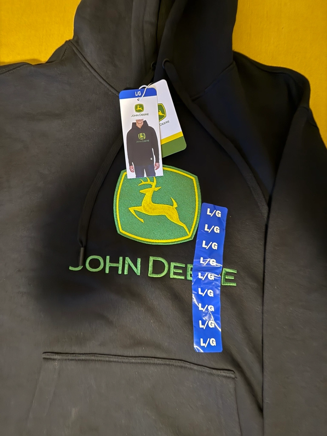 Get ready to cozy up in this brand new John Deere black hoodie, a must-have for any fan! This hoodie is a size large and features the classic John Deere logo. Here are some details: * Brand: John Deere * Colour: Black * Size: Large * Condition: New with tags Don't miss out—if you're seeing this ad, it's still available! Pick up in Downtown. Please check out more of my items and get a good deal.