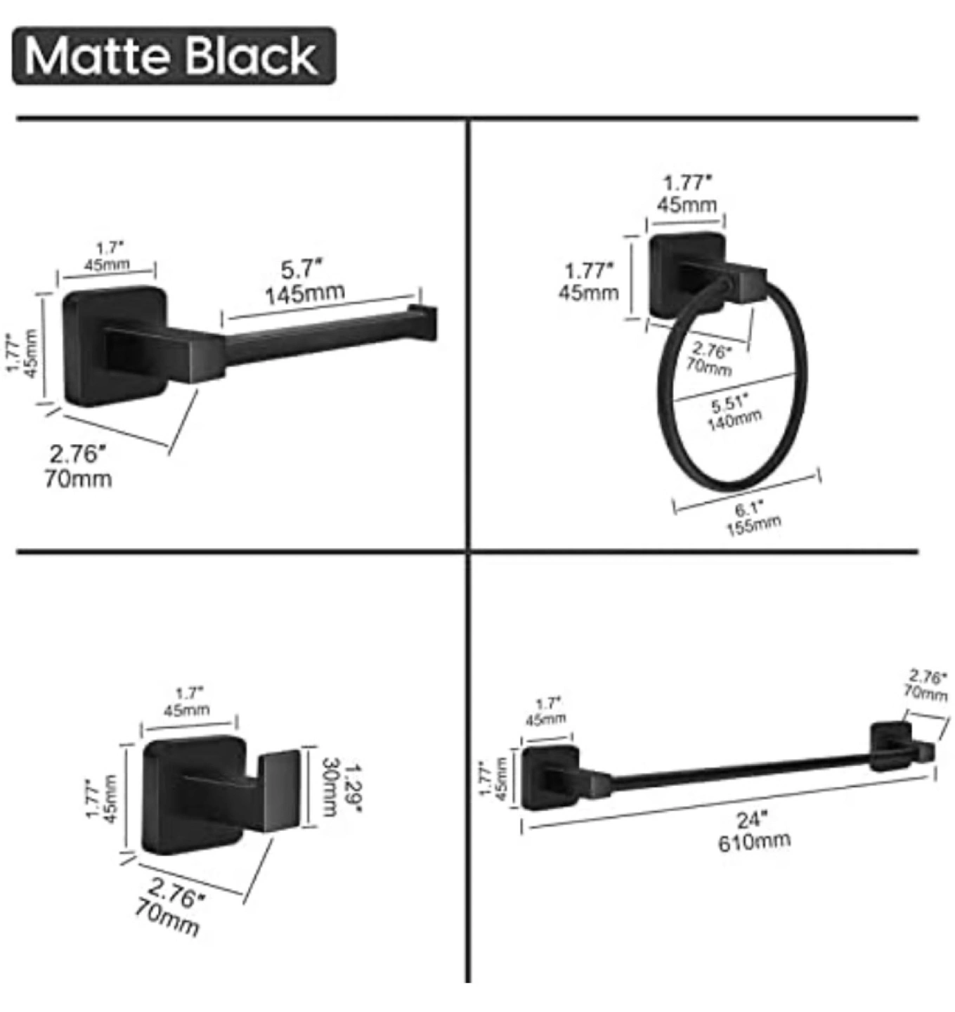 291Brand New Bathroom Hardware Set 4 Pieces, Matte Black Towel Bar, Towel Ring, Toilet Paper Holder, Hook $20 Pickup in Whitby