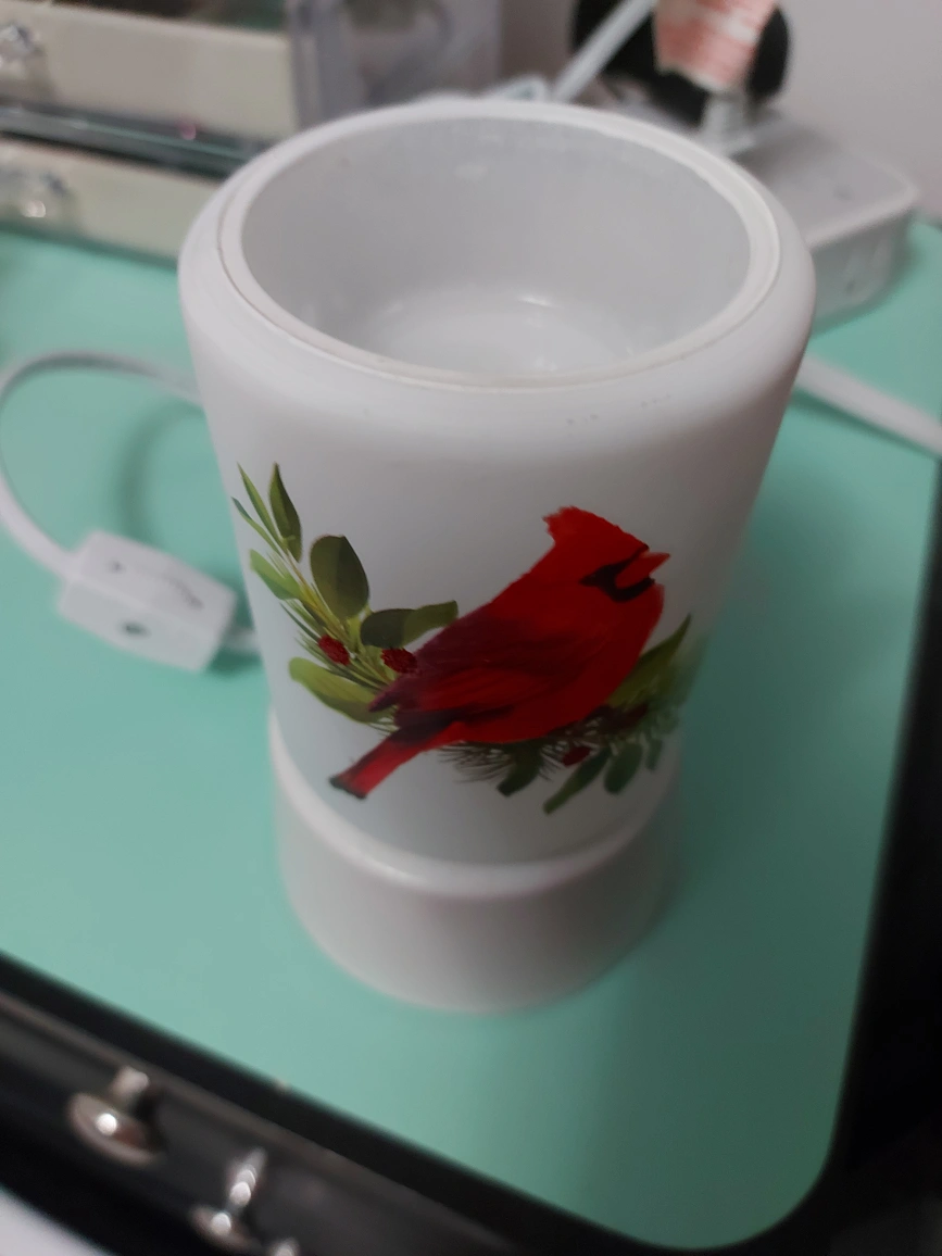 Selling a Scentsy warmer. The warmer itself has a beautiful painted bird on it. Also included is a wax bar in the Red Cedar & Sage scent, as well as a replacement bulb. See photos for details.