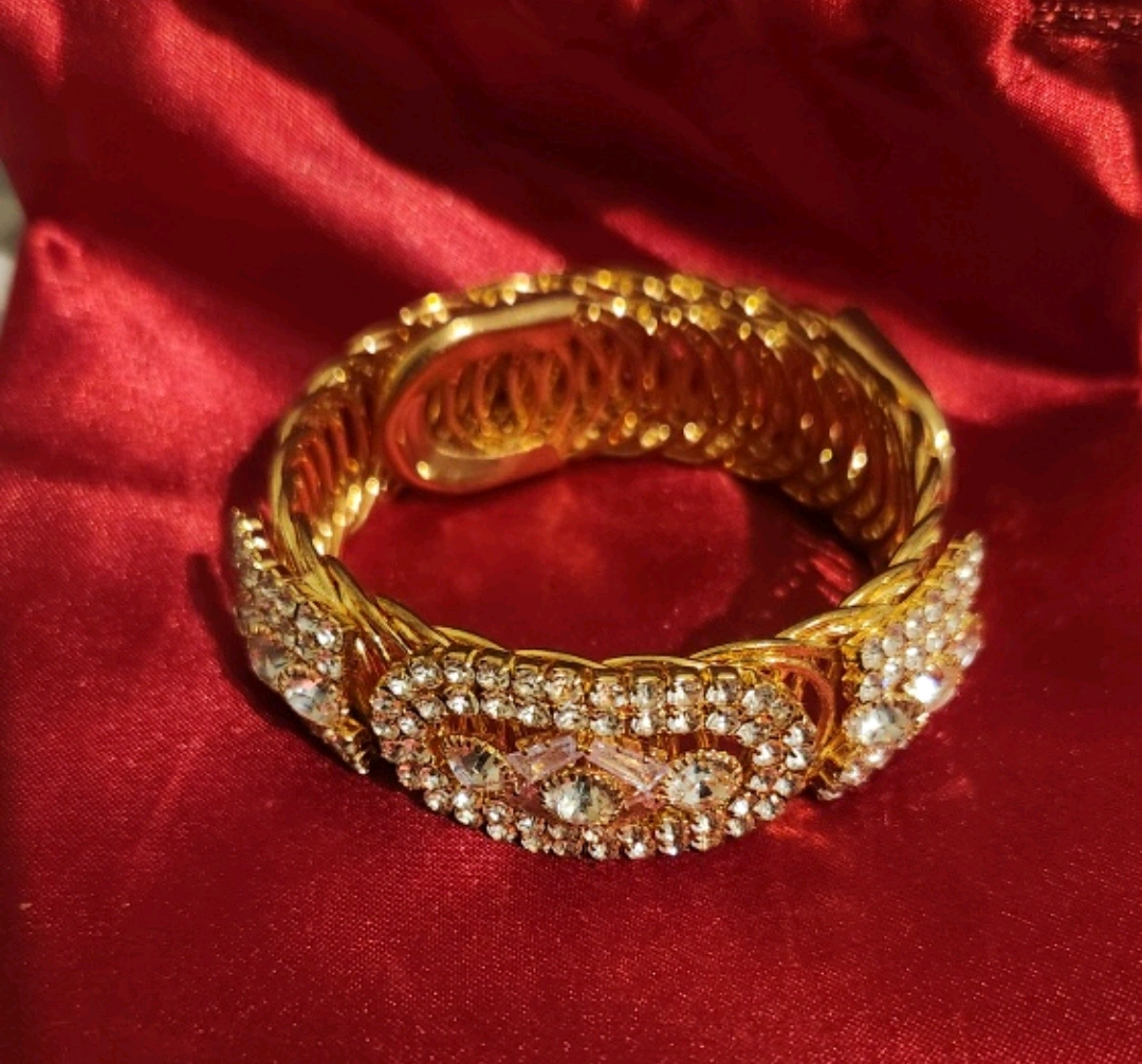 Selling a beautiful gold-tone bracelet adorned with sparkling rhinestones! It's in brand new never worn condition and would make a lovely addition to any jewellery collection