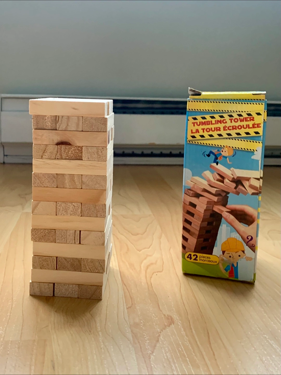 Tumbling Tower - aka Jenga - travel size. Great for camping, games in the park, travelling, small condo, dorm room, etc.