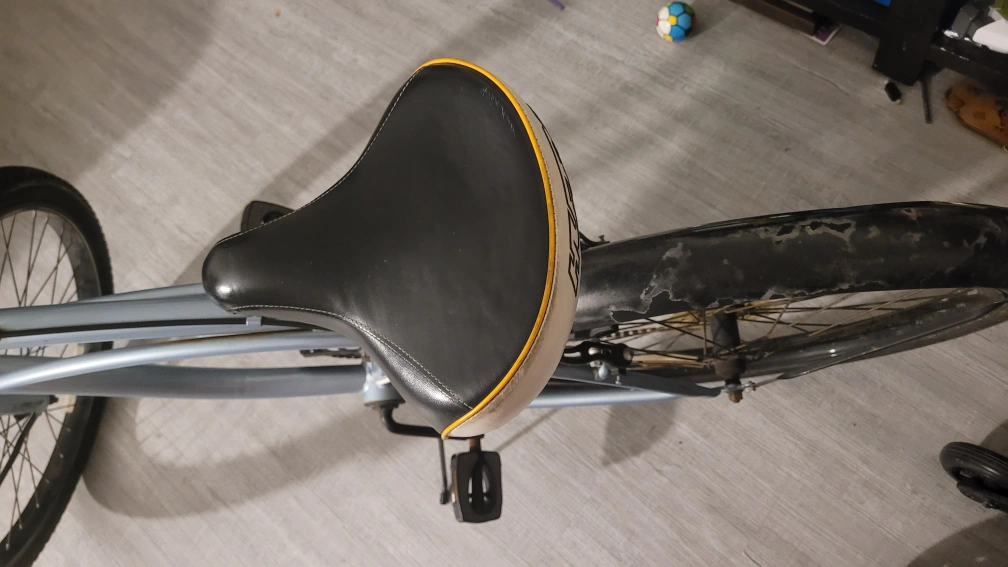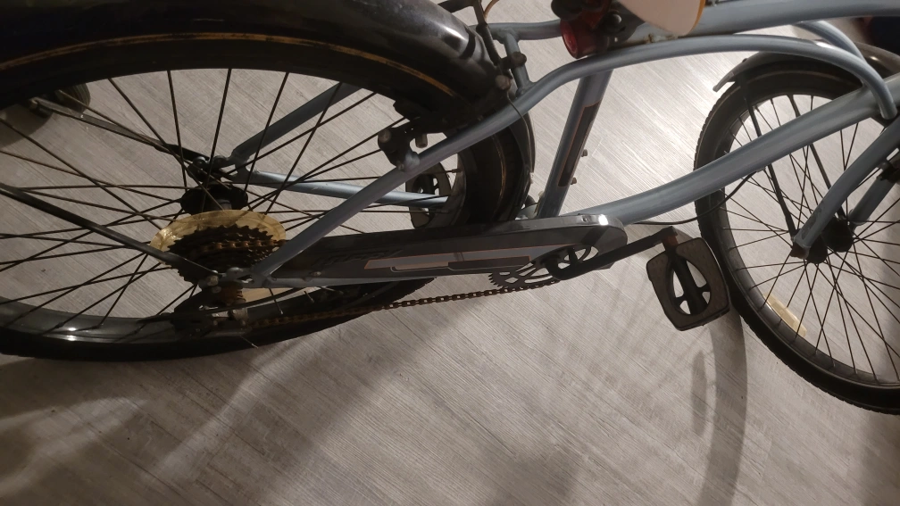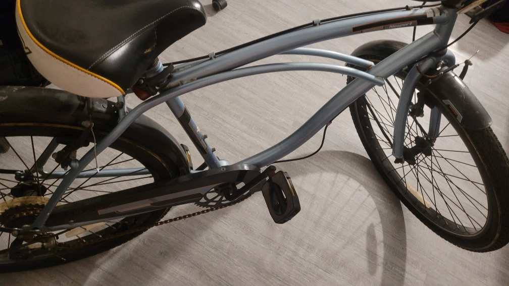 Selling a men's cruiser bike in blue. It's in used condition, with some wear and tear. Great for casual rides.