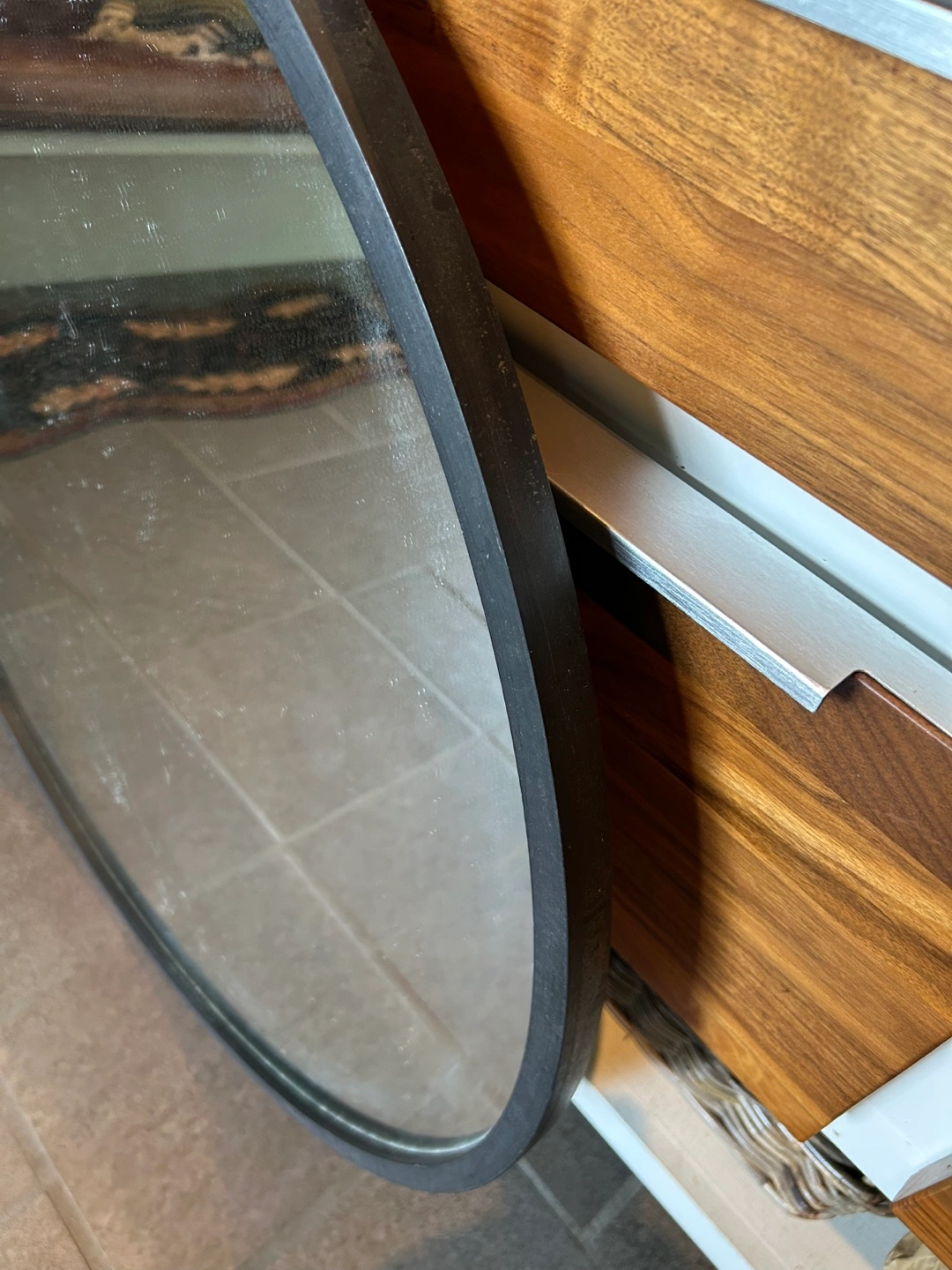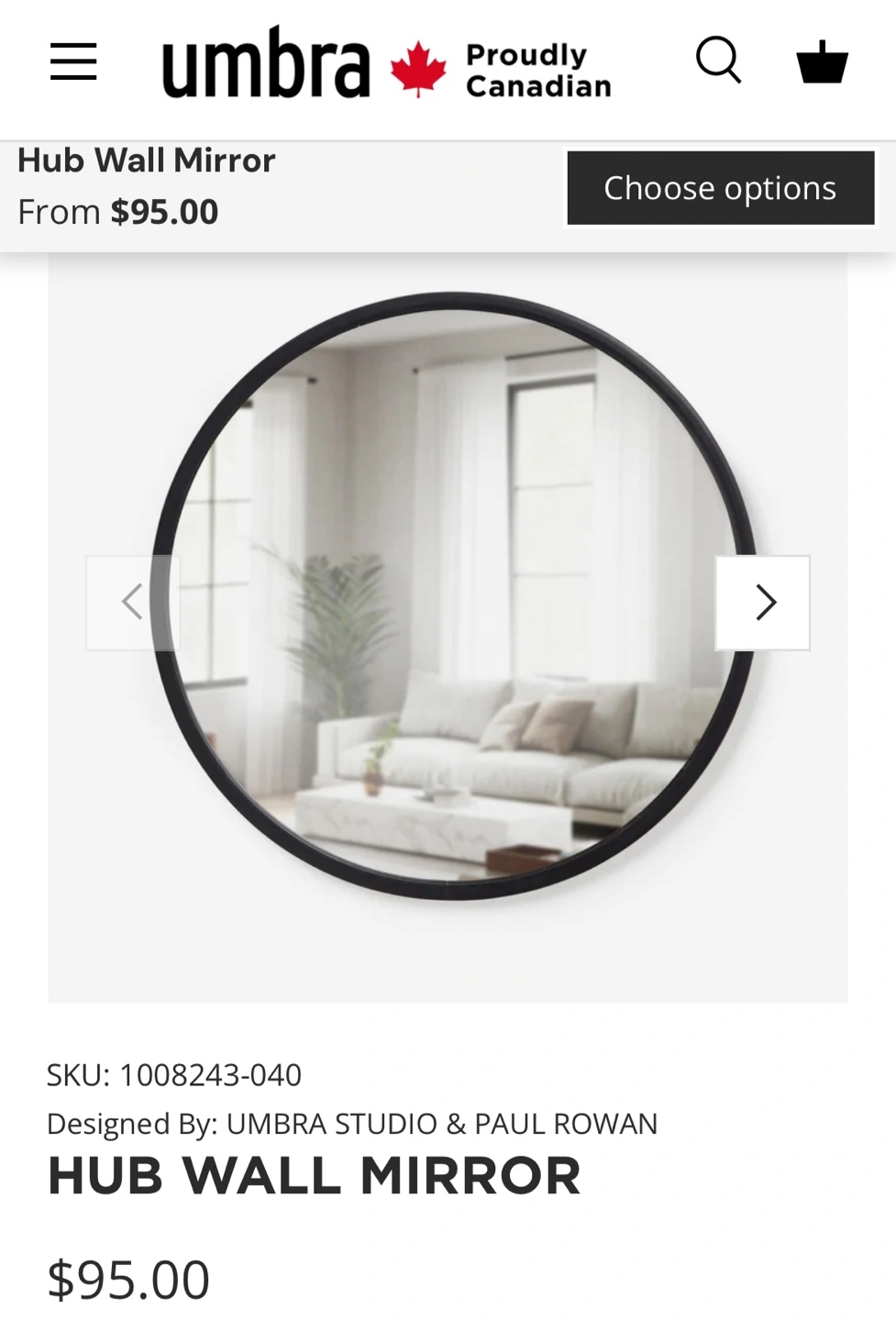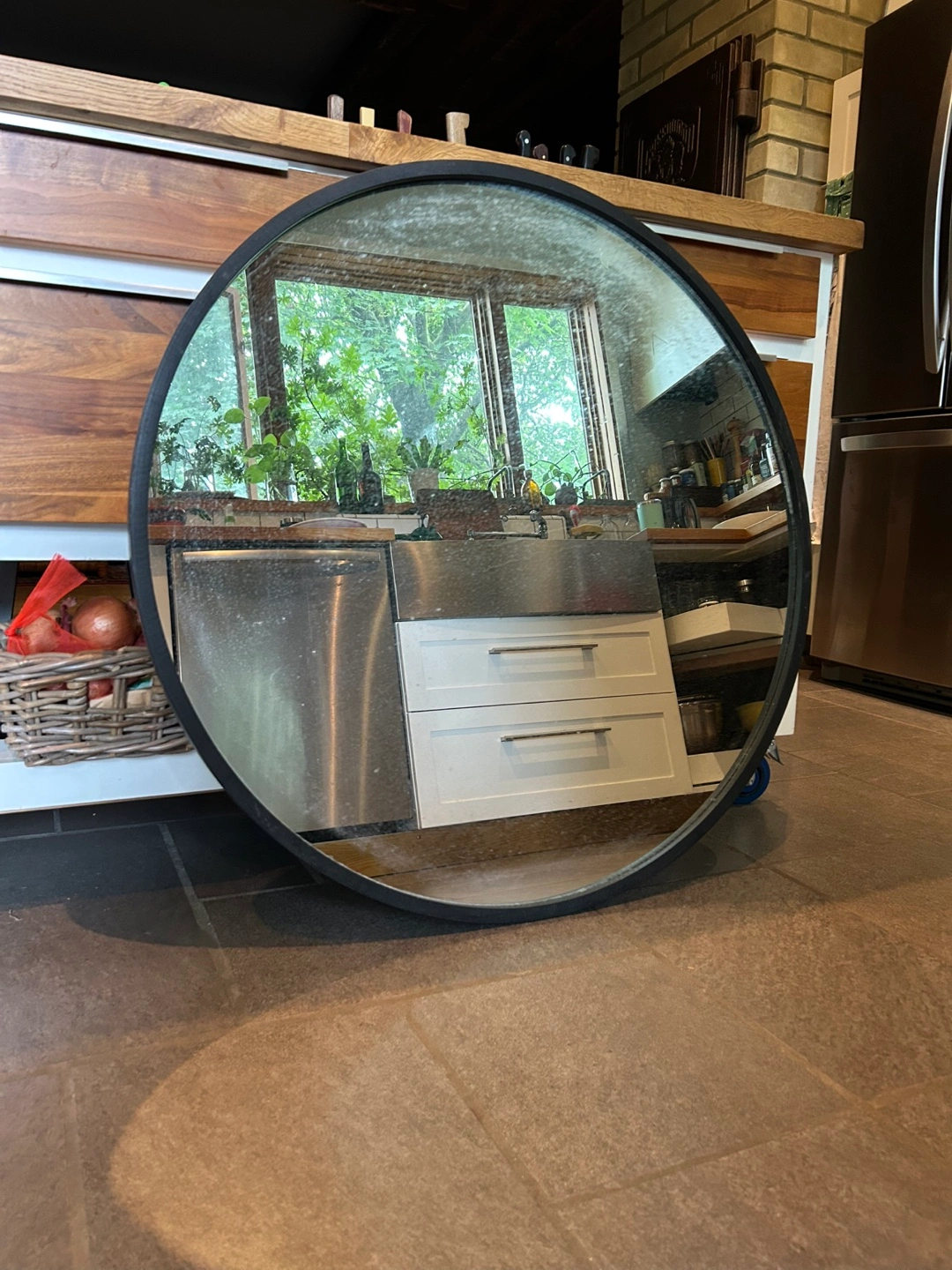 #Freecycle I’m passing along an Umbra Hub wall mirror! It's a stylish and functional piece that would look great in any room. The mirror is a bit dusty but in great condition and ready to find a new home! Note that the thick black frame is rubber. See last picture for info from the Umbra website. Edit: The original hanging wire is on the back for easy mounting.