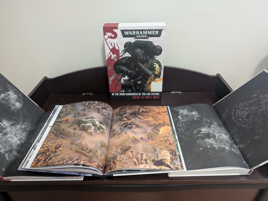 Books as seen in the pictures are all in very good condition. 3rd edition bundle Tyranid Codex and 3rd edition magazine is 20 dollars. 4th edition bundle Battle for Macgragge books and White Dwarf 20 dollars and Space Marine Codex 20 dollars. Dark Angels bundle 20 dollars. 3 Vol. Warhammer set 30 dollars. Hardcover Ork codex 20 dollars.