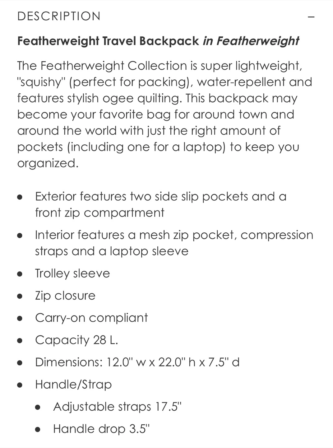 Vera Bradley Feather Weight Travel Backpack