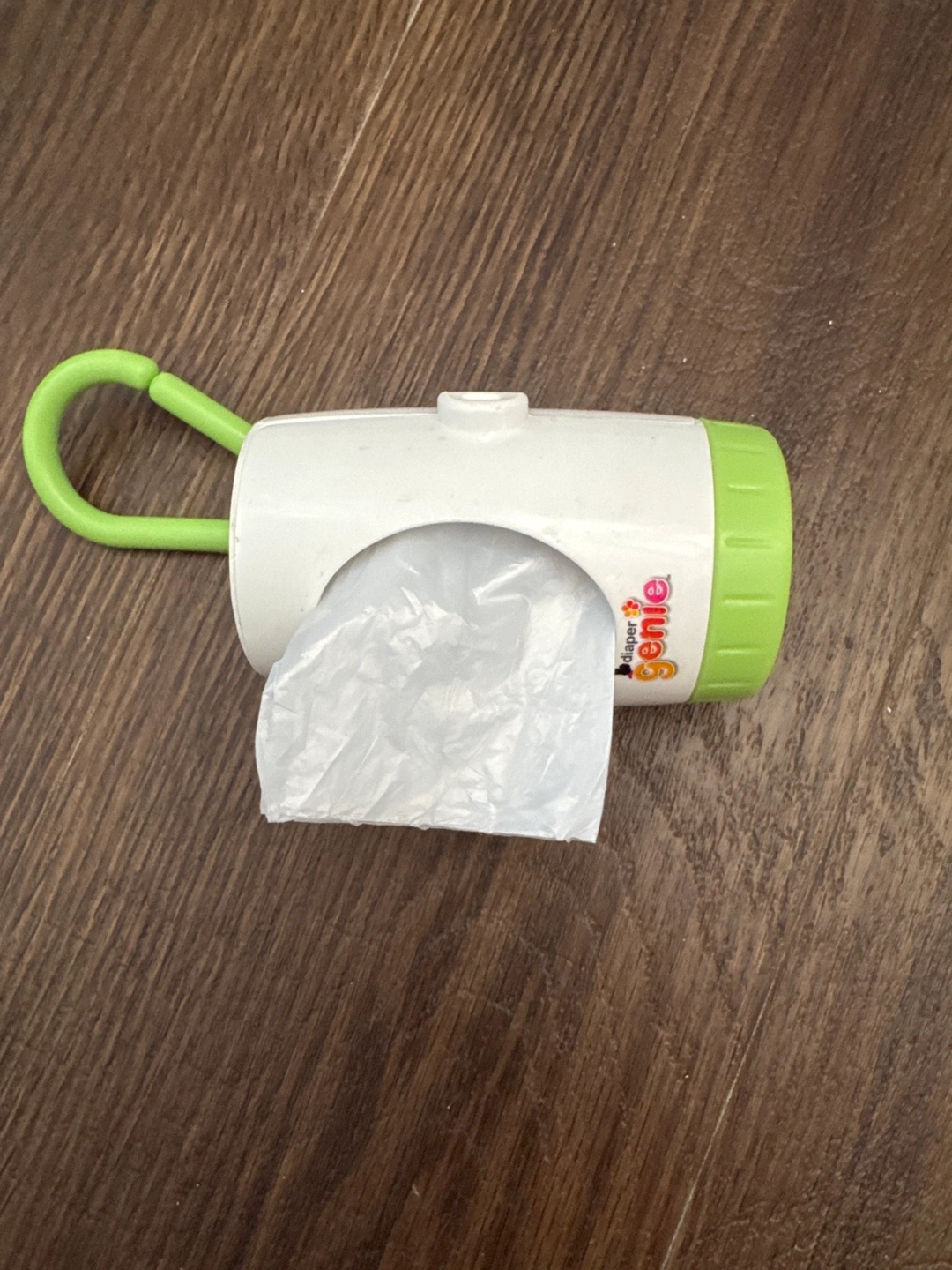 Selling a Diaper Genie diaper bag dispenser! It's in great condition and perfect for on-the-go use. Clips easily to your diaper bag or stroller