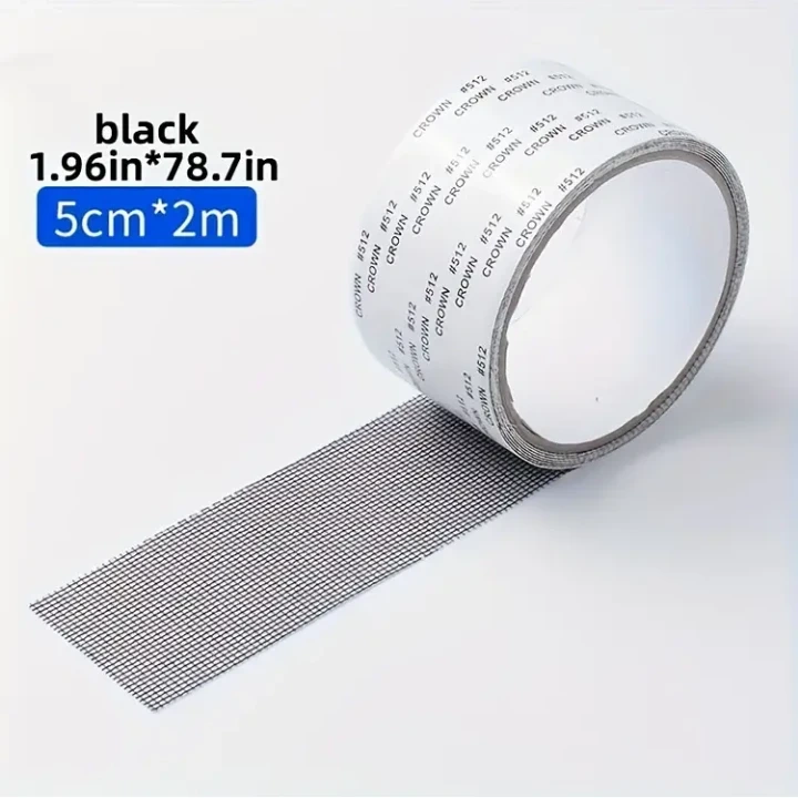 I'm selling window screen repair tape in black. It's perfect for fixing holes in your window or door screens. The tape measures 1.96 inches by 78.7 inches, or 5cm by 2m. Easy to use and effective!