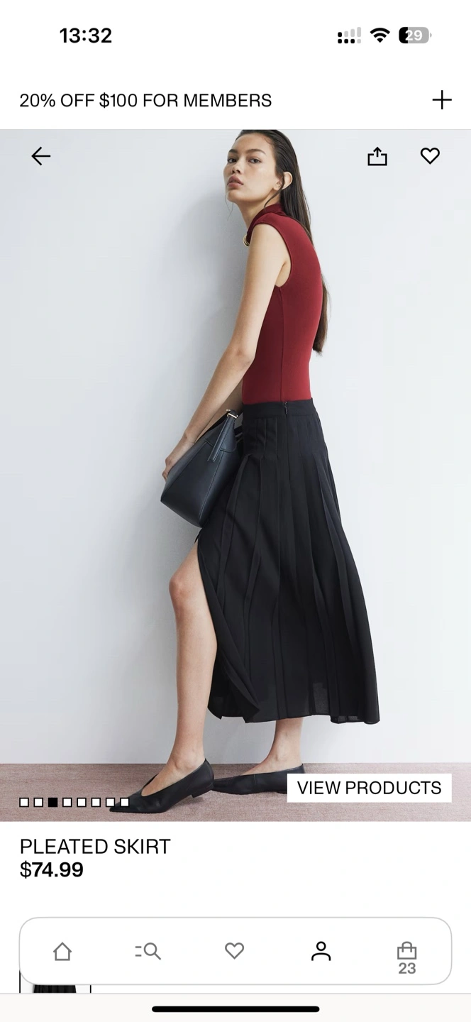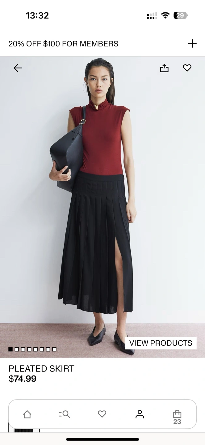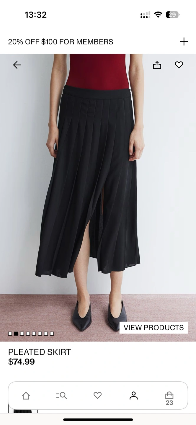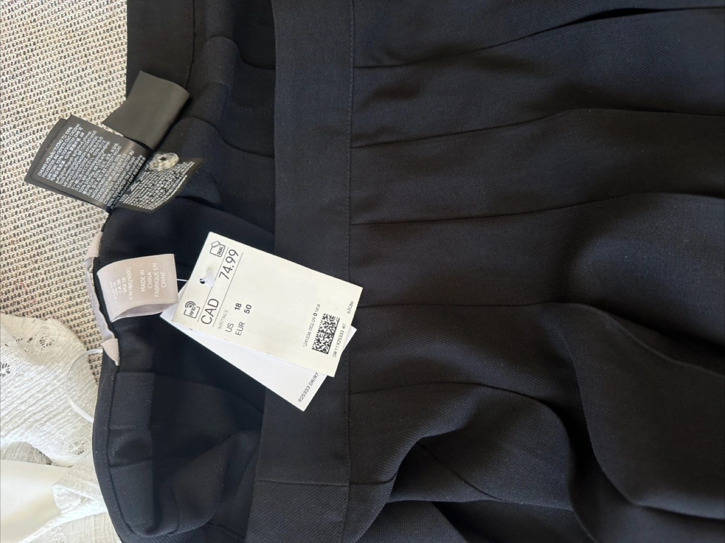 Selling a HM pleated skirt in black. It's a size 18 (US) / 50 (EUR). Originally bought for $74.99 CAD. Brand new! Selling it for 25$ because I lost weight and want to get a smaller size skirt