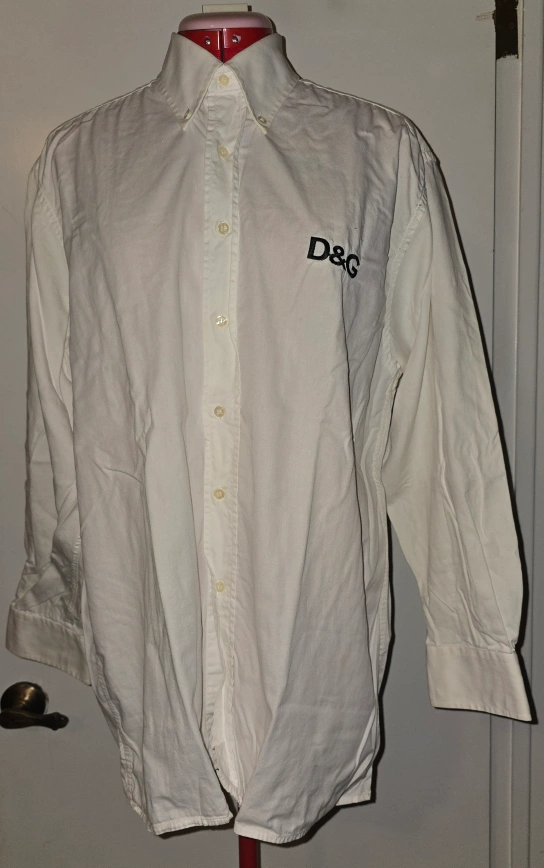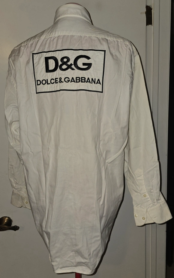 Selling a Dolce & Gabbana long sleeve shirt. The shirt is white, and features the D&G logo on the front and back. It's in great condition!