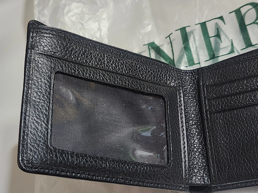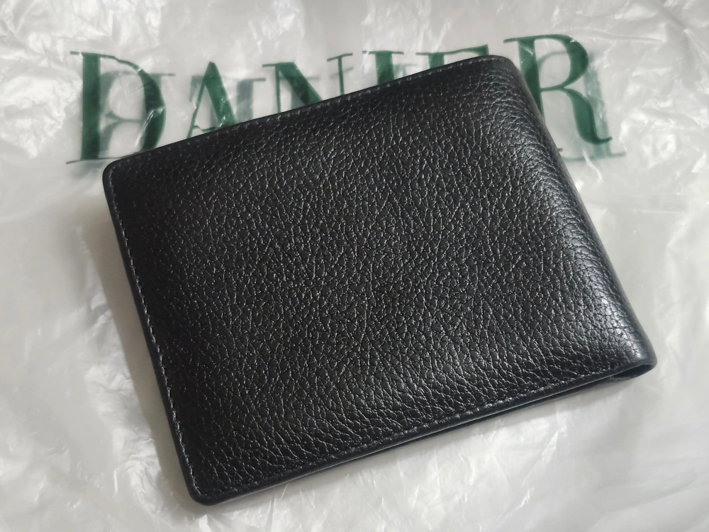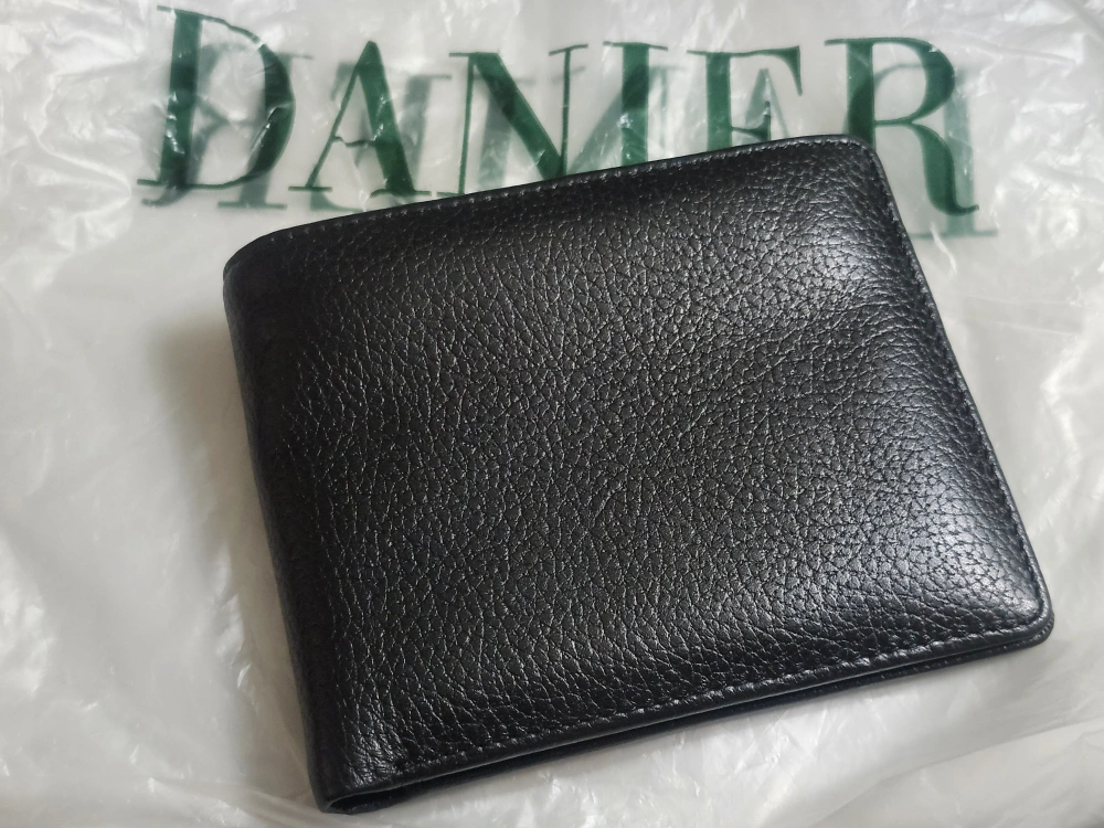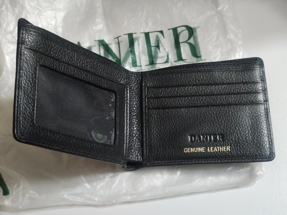 Here's a DANIER genuine leather wallet in black! It has a spot for your ID and several card slots.