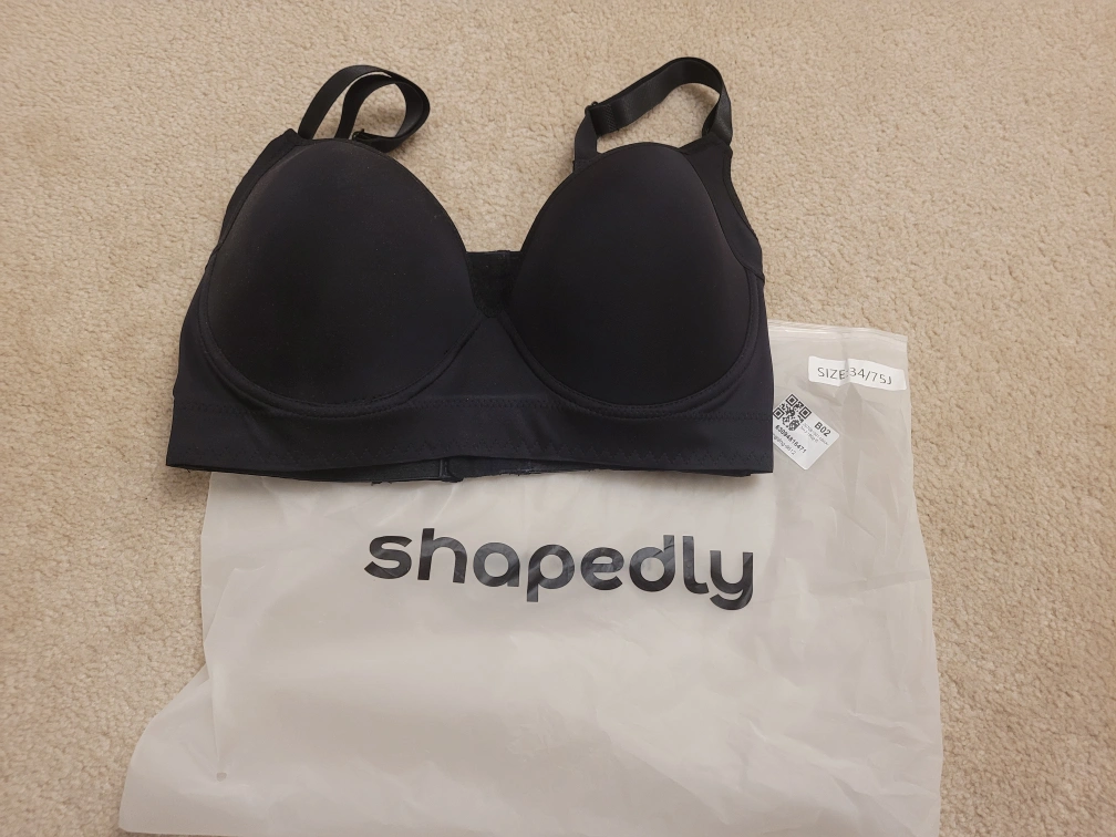 Selling a Shapedly bra in size 34/75J. It's a sleek black colour and in new condition. I couldn't wear it. Band is true to size, cups fit small...more like an H or I. SFPF home. Retails for $40+ Pick at Anderson and Taunton.