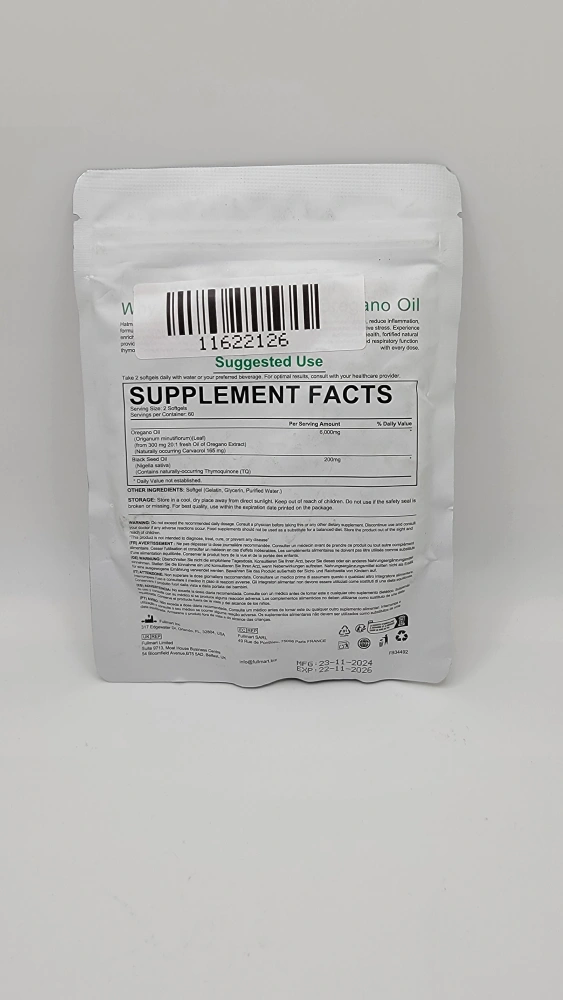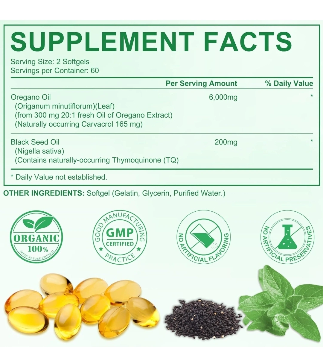 • 6000mg blend of Oil of Oregano + Black Seed Oil
