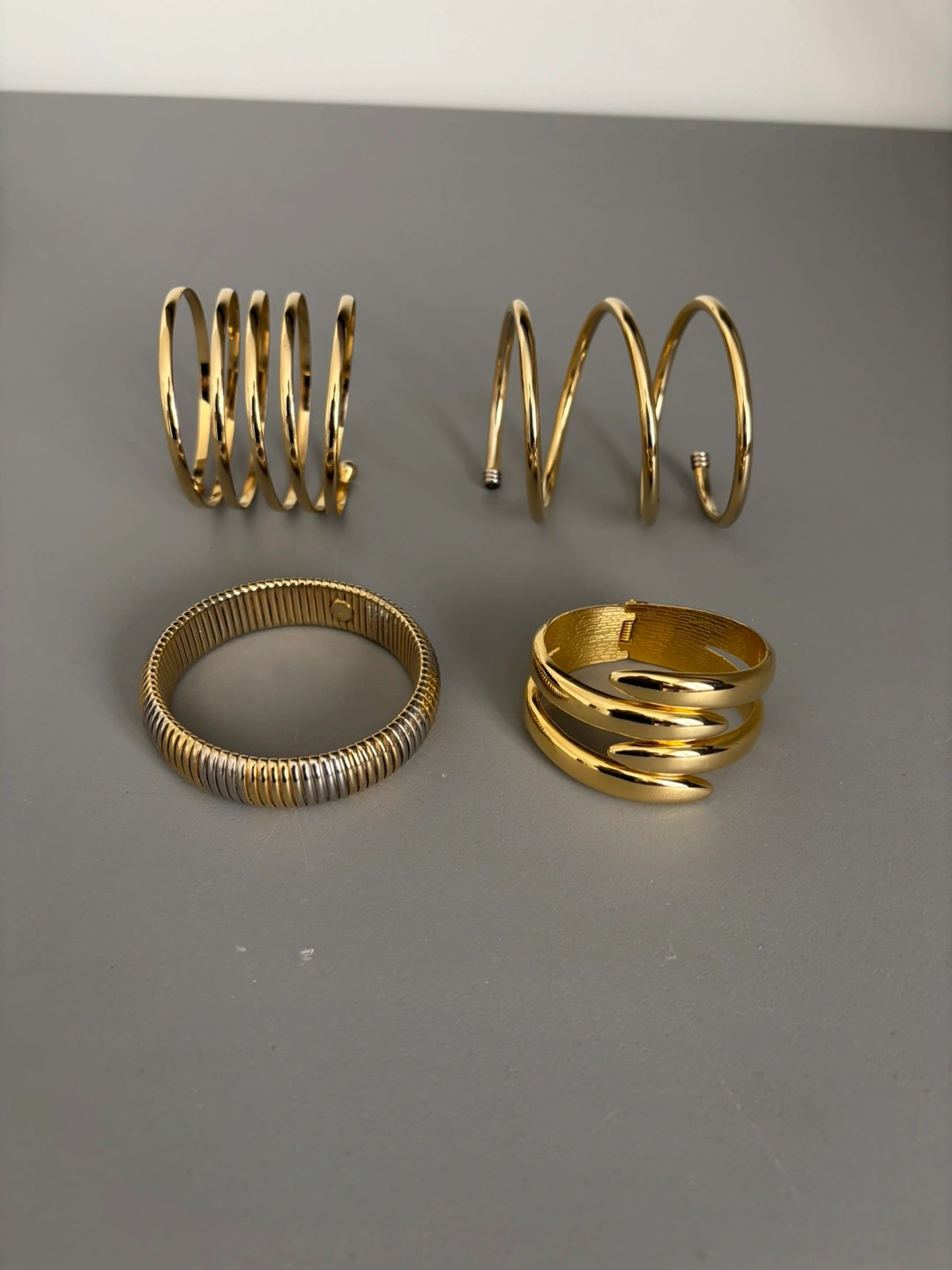 Selling spiral bracelets, one ribbed bracelet, and one triple-band bracelet. They're in great condition and ready for a new home!