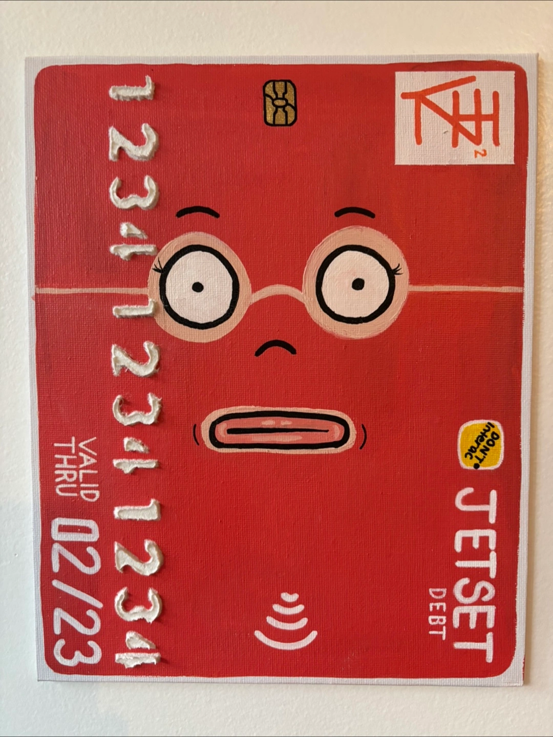 8”x10” Acrylic Paint and Fibre Paste (raised numbers and eyes) on Canvas board