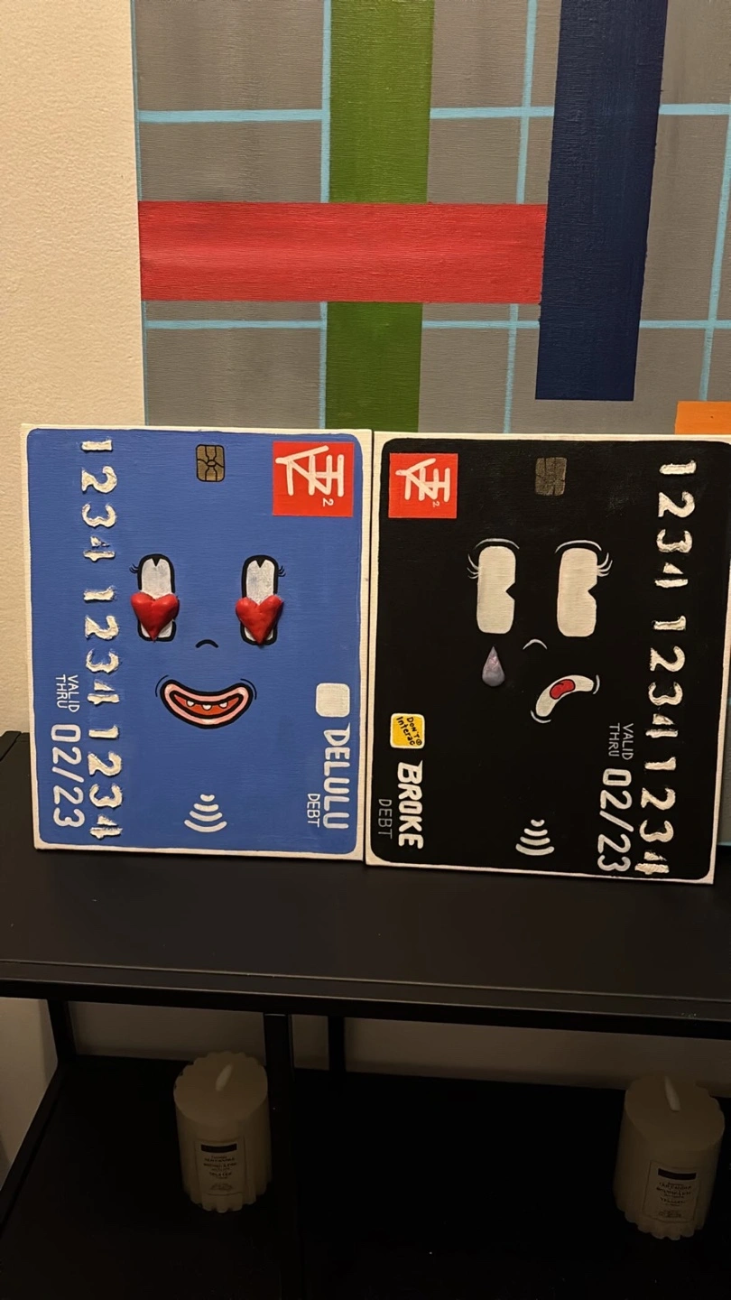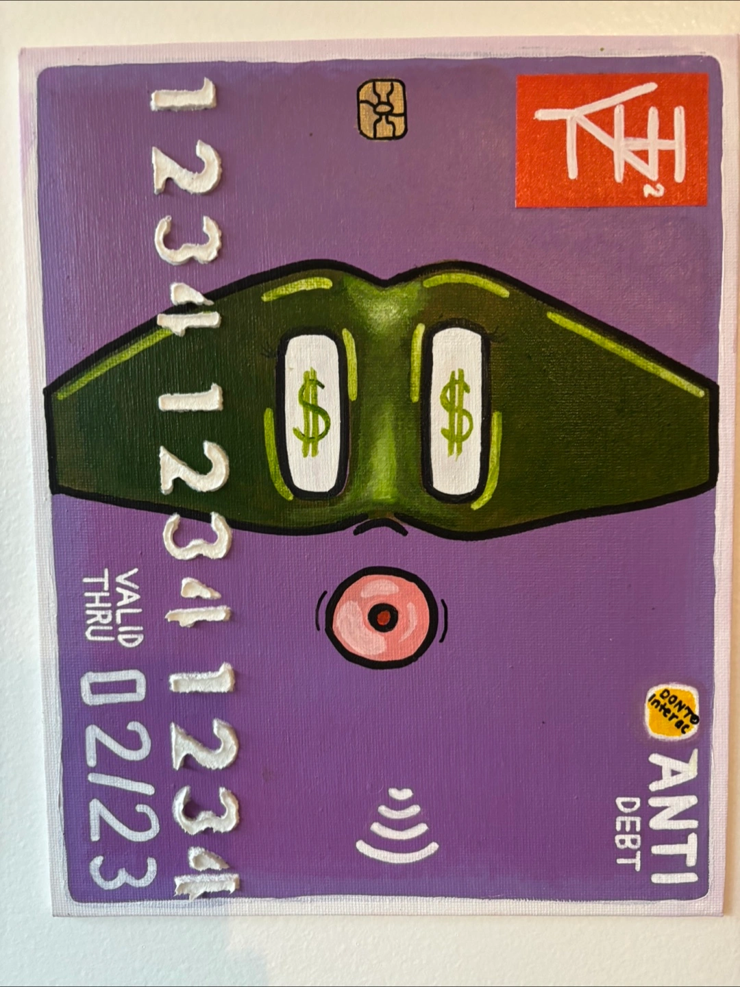 8”x10” Acrylic Paint and Fibre Paste (raised numbers and eyes) on Canvas board