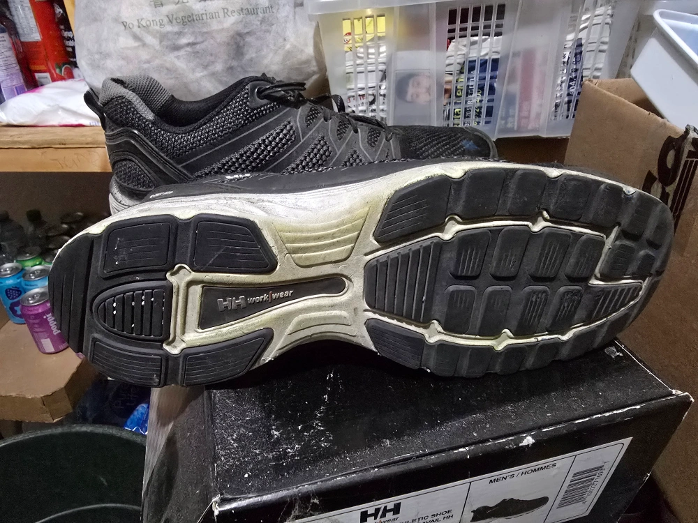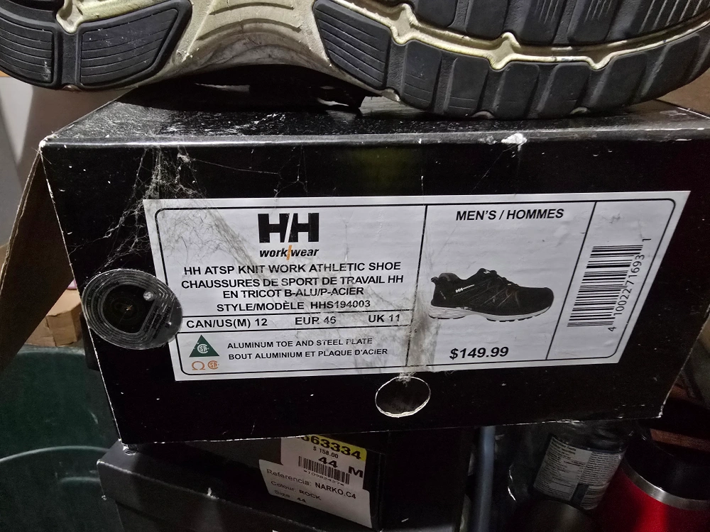 Selling a pair of HH Workwear Steel Toe athletic shoes in size 12. They show some signs of wear but are still in good condition for work. The box is included! Originally bought for $149.99.