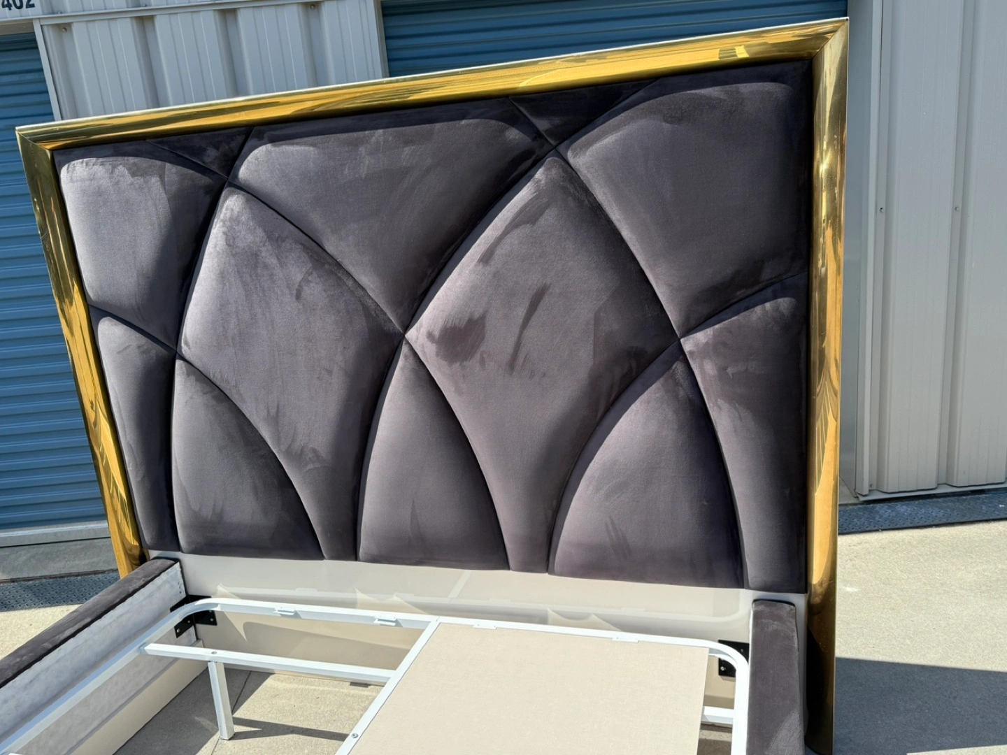 116Elegant and luxurious KING size bed from the Dolce collection. ✨ Velvet finish with gold accents on solid wood frame – a real centerpiece for your bedroom. 📏 Size: 81x85x72 inches ✔️ Condition: Very good (8/10) – minor signs of use. 📍 Pickup in Etobicoke 💵 Price: $500 (firm) Perfect for those who appreciate style, quality, and comfort.