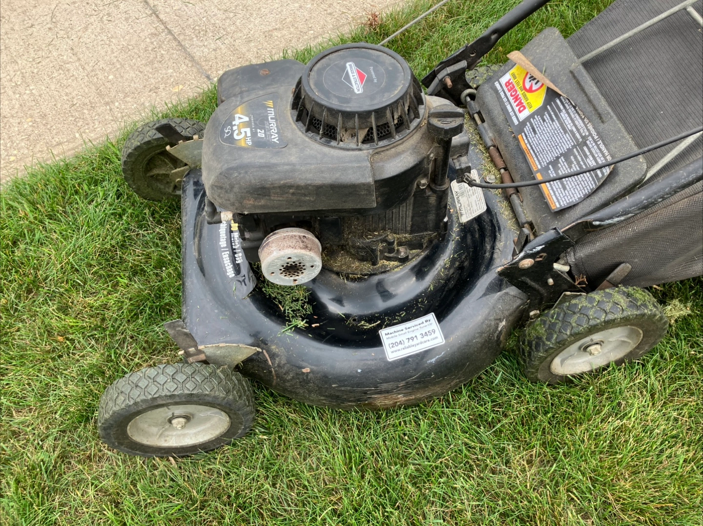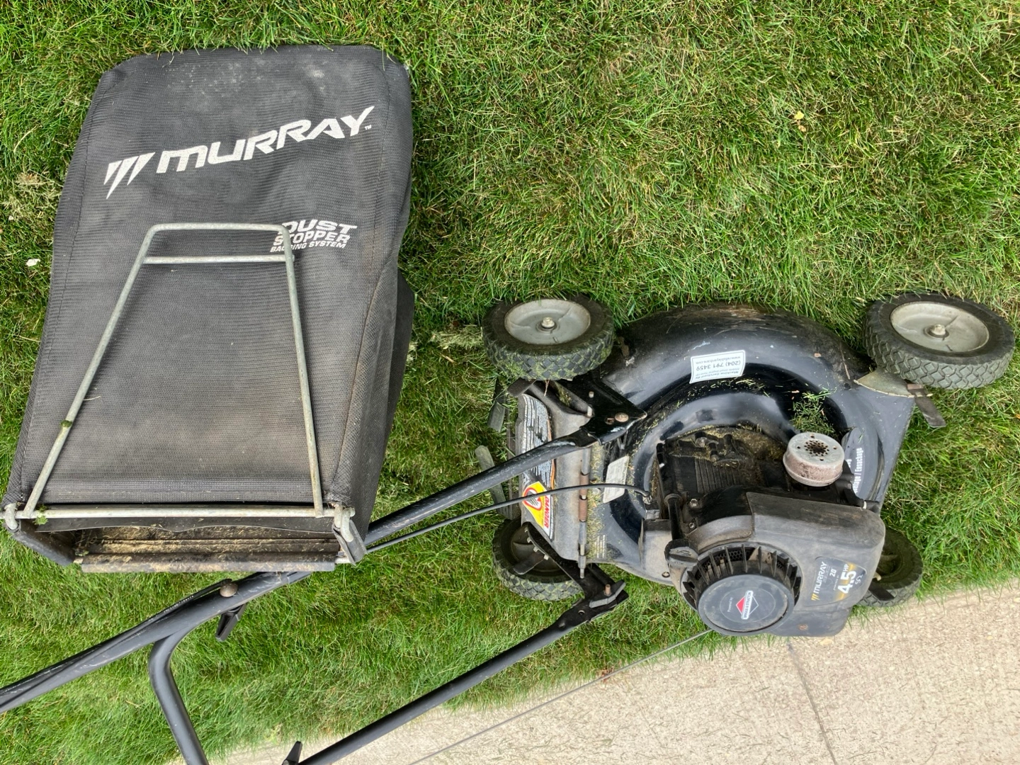 Murray 4.5 HP lawn mower. It's a 2-in-1 combo, meaning it can mulch and bag. Perfect for keeping your lawn looking great this summer!