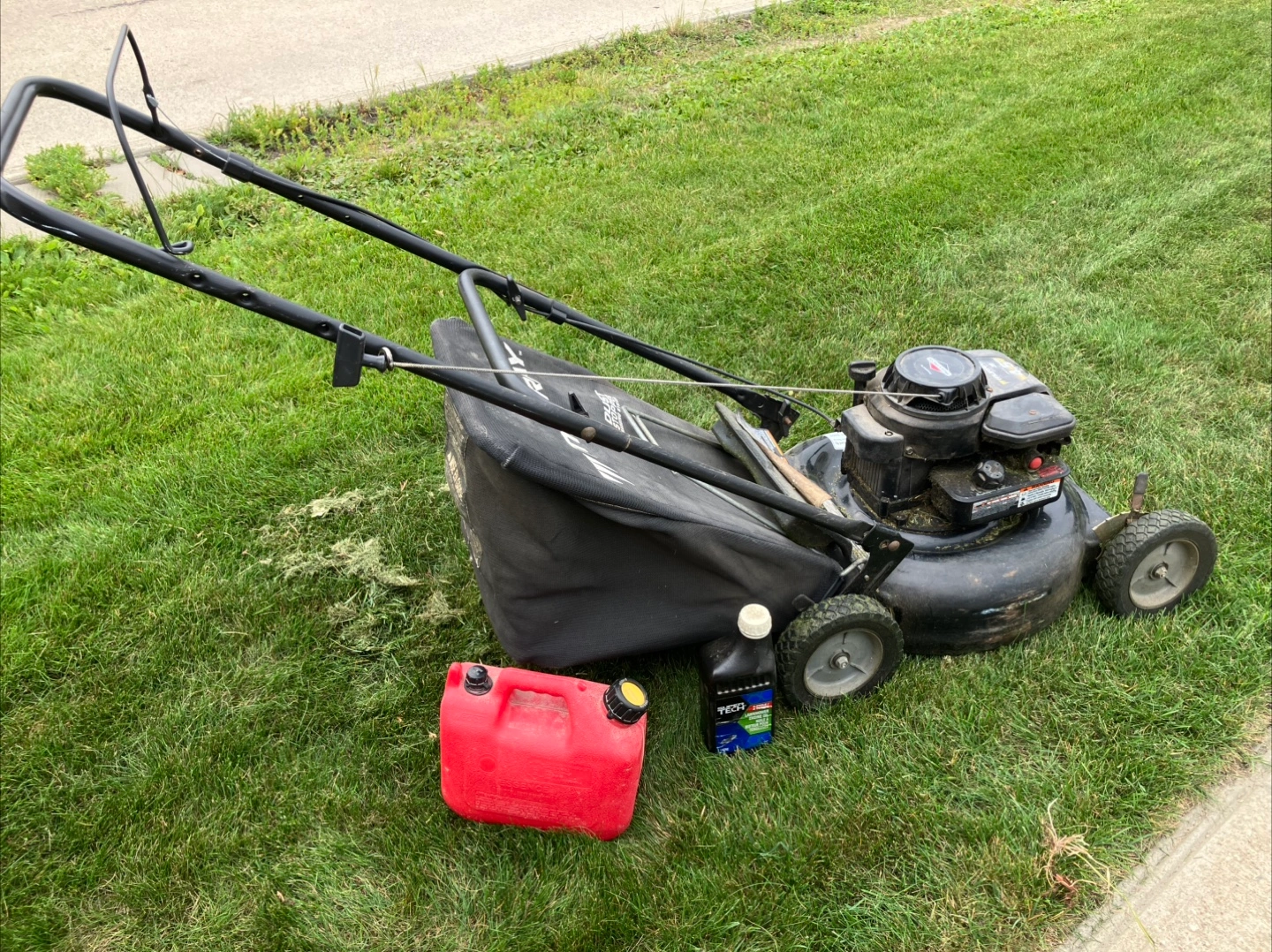 It comes with a gas can and remaining oil.