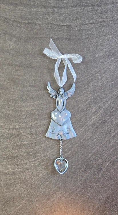 Like new condition and comes in its original box. Angel is metal and has rhinestones on the heart. 6.5" long and 3" wide. Cross-posted.