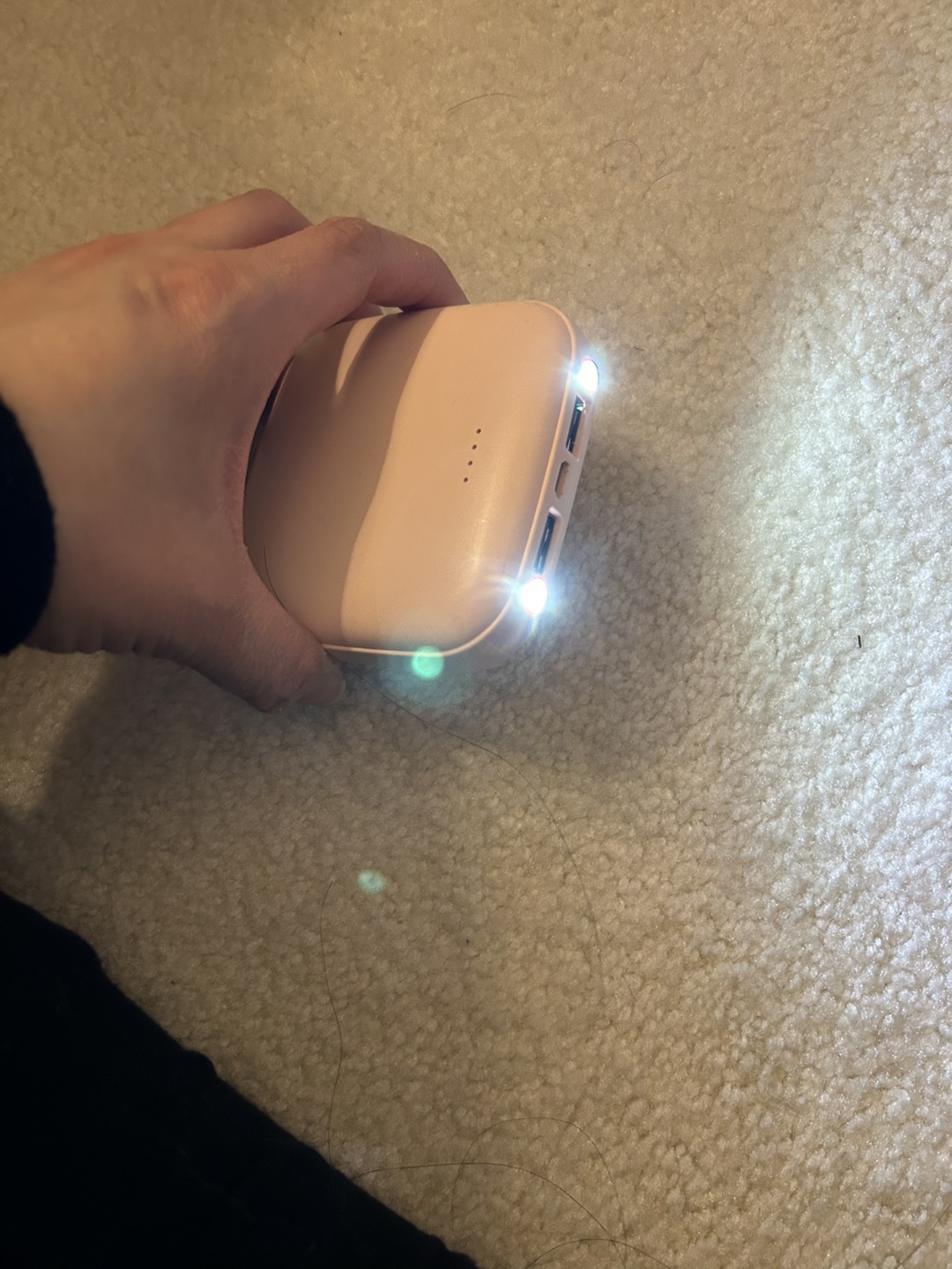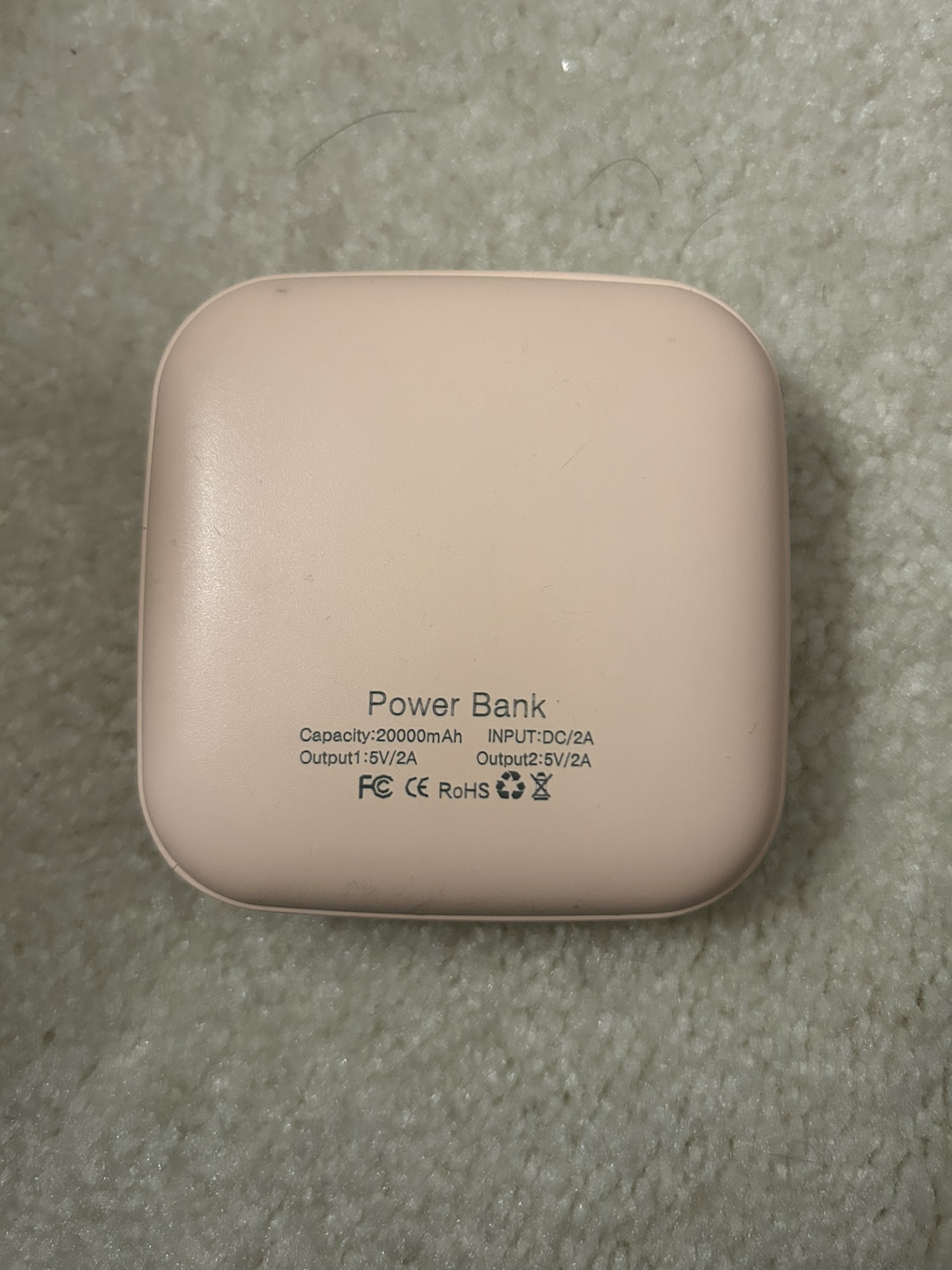 135Palm size pink power bank also has build in flash light. Capacity 20000mAh USB charger not included
