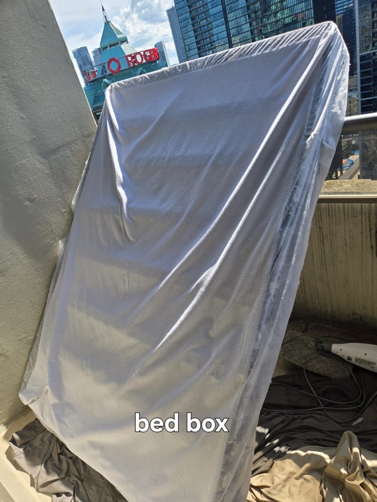 Selling a double size mattress and Bed Box that comes with a waterproof bug protector and foam topper.
