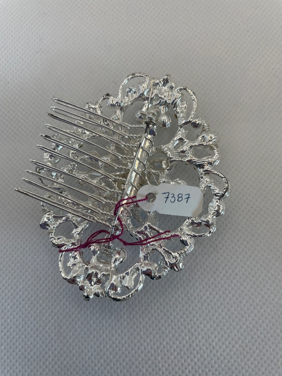 Selling a beautiful silver hair comb 3 inches wide with rhinestone detailing! never worn , unsold inventory bridal or for a special occasion to add a bit of sparkle to your look.