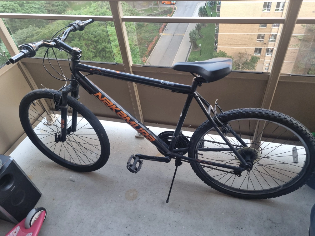 Selling a Nakamura mountain bike. It's in good condition and ready for some trails or city riding! The bike features Shimano RevoShift shifters for smooth gear changes.