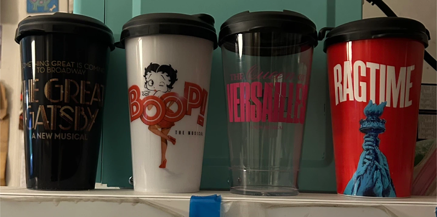 RARE COLLECTIBLE BROADWAY SOUVENIR CUPS WITH LIDS. EXCELLENT ALMOST NEW NEW CONDITION.
