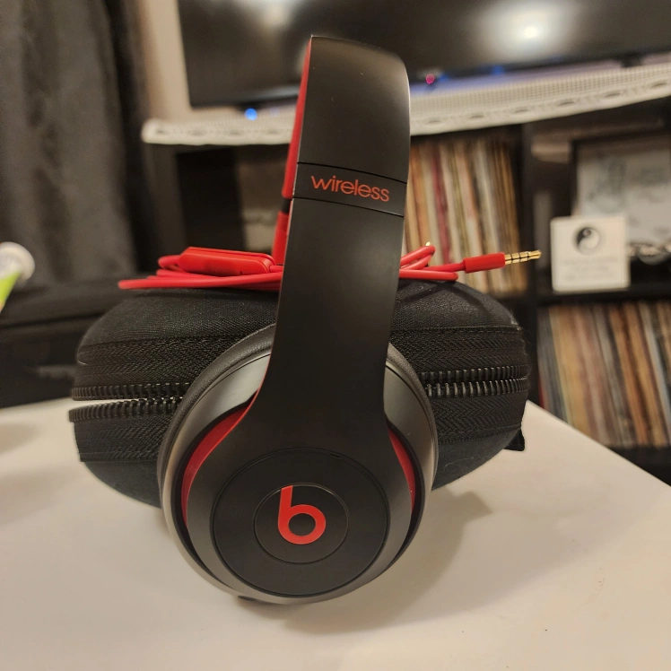 Selling a pair of Beats Studio 3 Wireless headphones in black and red! They come with a carrying case and a red audio cable. Gently used , like new condition.