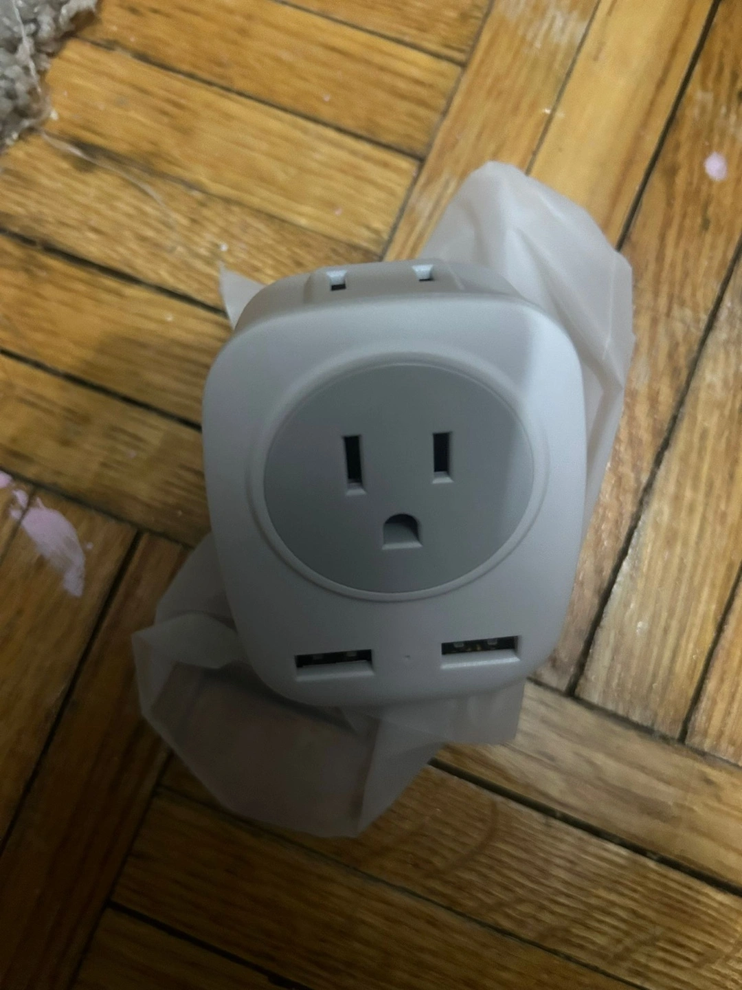 Selling a universal travel adapter. It has a standard outlet and two USB ports, making it perfect for charging multiple devices while you're on the go! It's lightweight and portable, ideal for any traveller