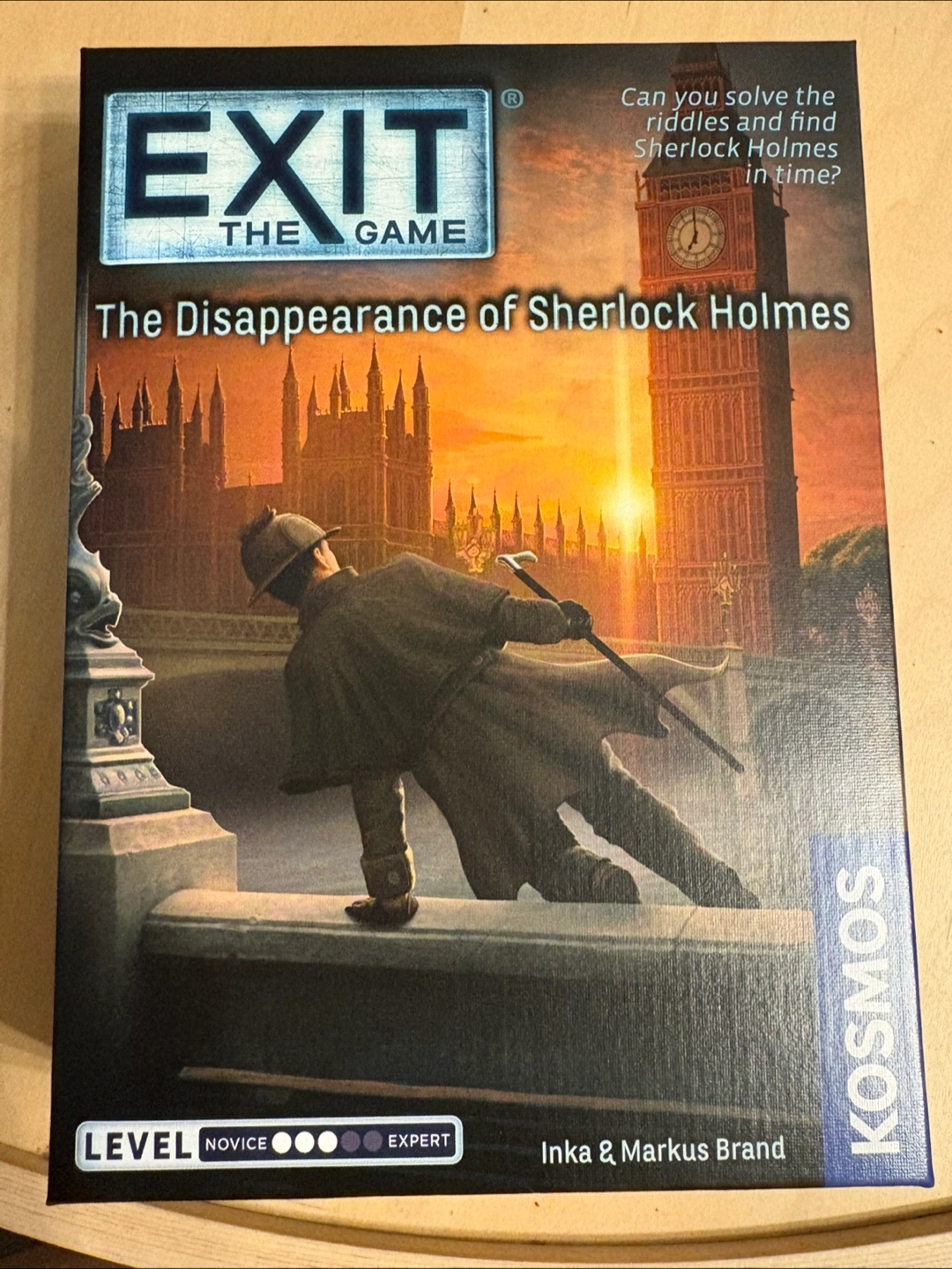74Selling the EXIT The Game: The Disappearance of Sherlock Holmes board game! It's perfect for 1-4 players and is rated for expert level players. Get ready to solve riddles and find Sherlock Holmes in time!