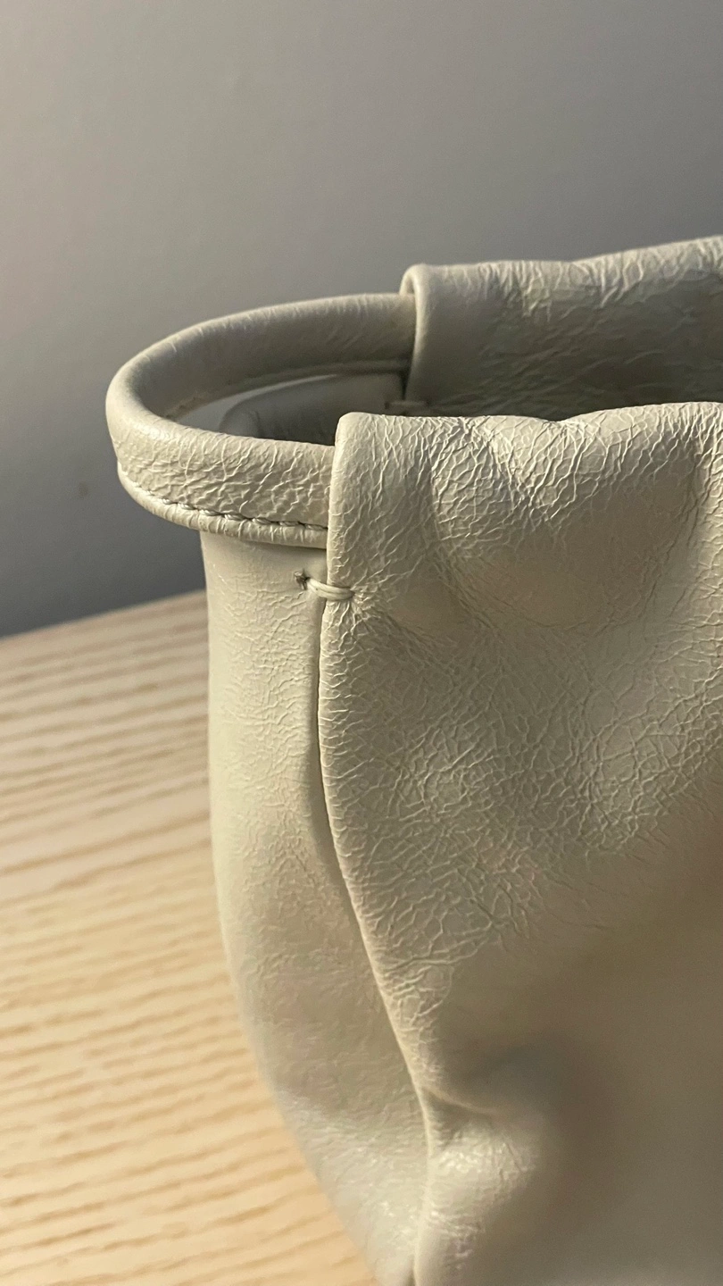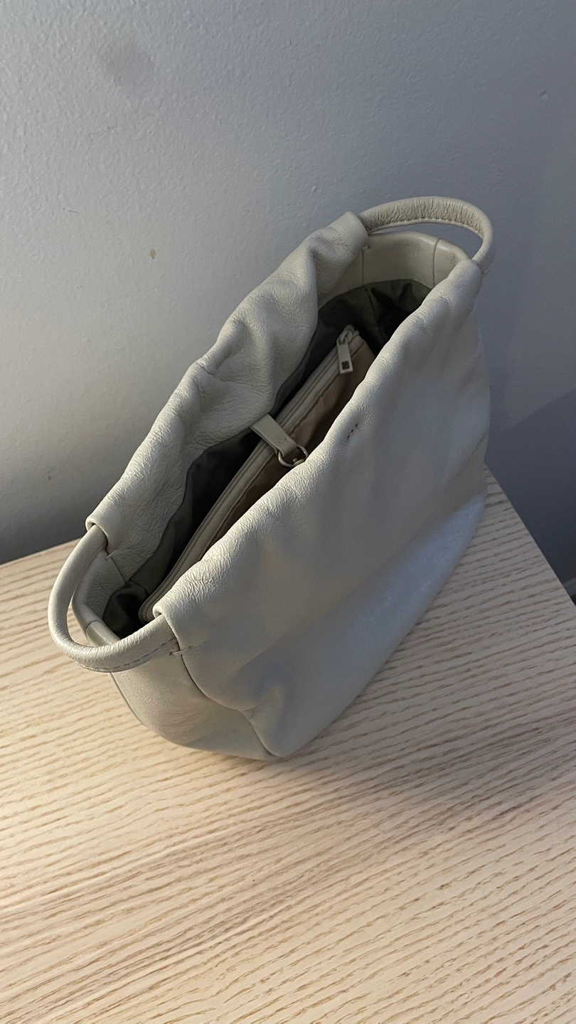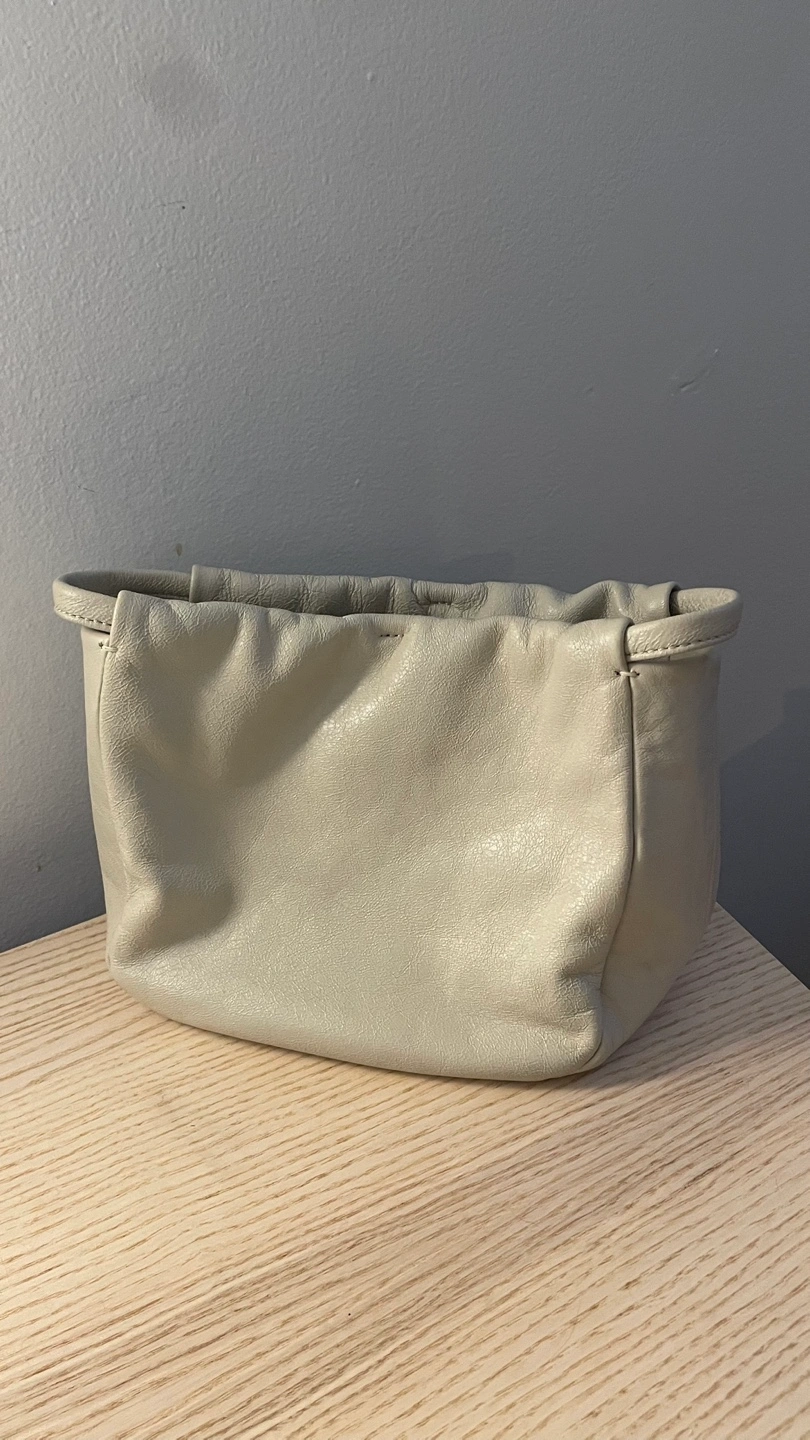 Ivory/Cream color leather pouch set. In good condition and has a soft, slouchy style. Perfect for makeup, toiletries, jewelry, etc.