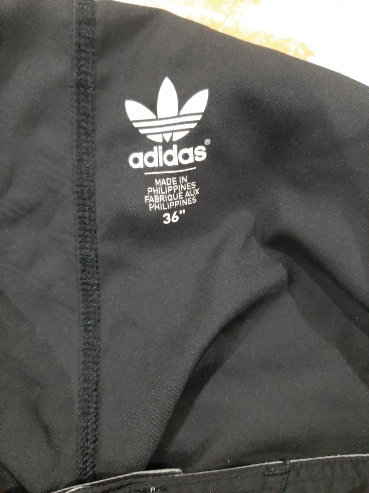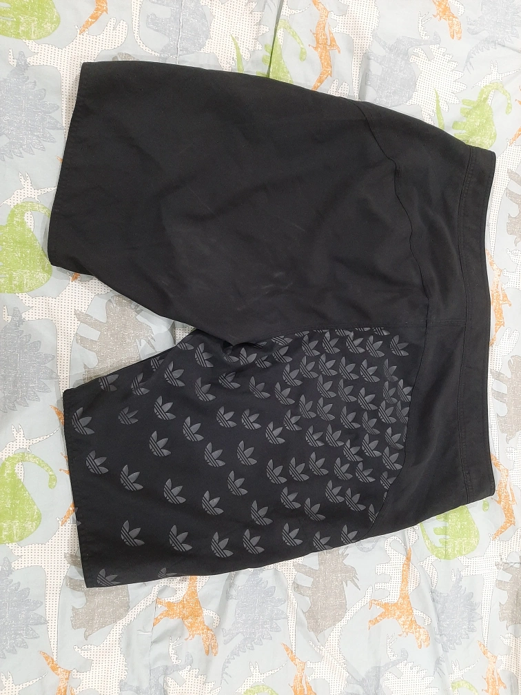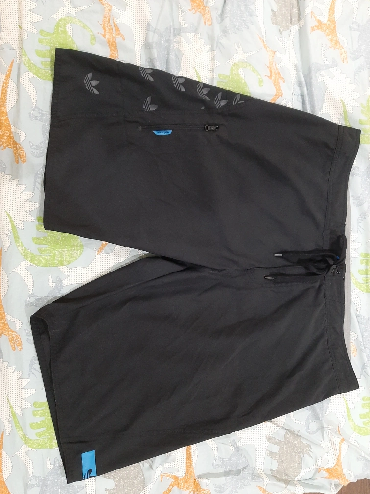 Selling a pair of Adidas swim trunks in black, size 36. They feature the classic Adidas logo and a cool design on the back. Perfect for swimming or just hanging out!