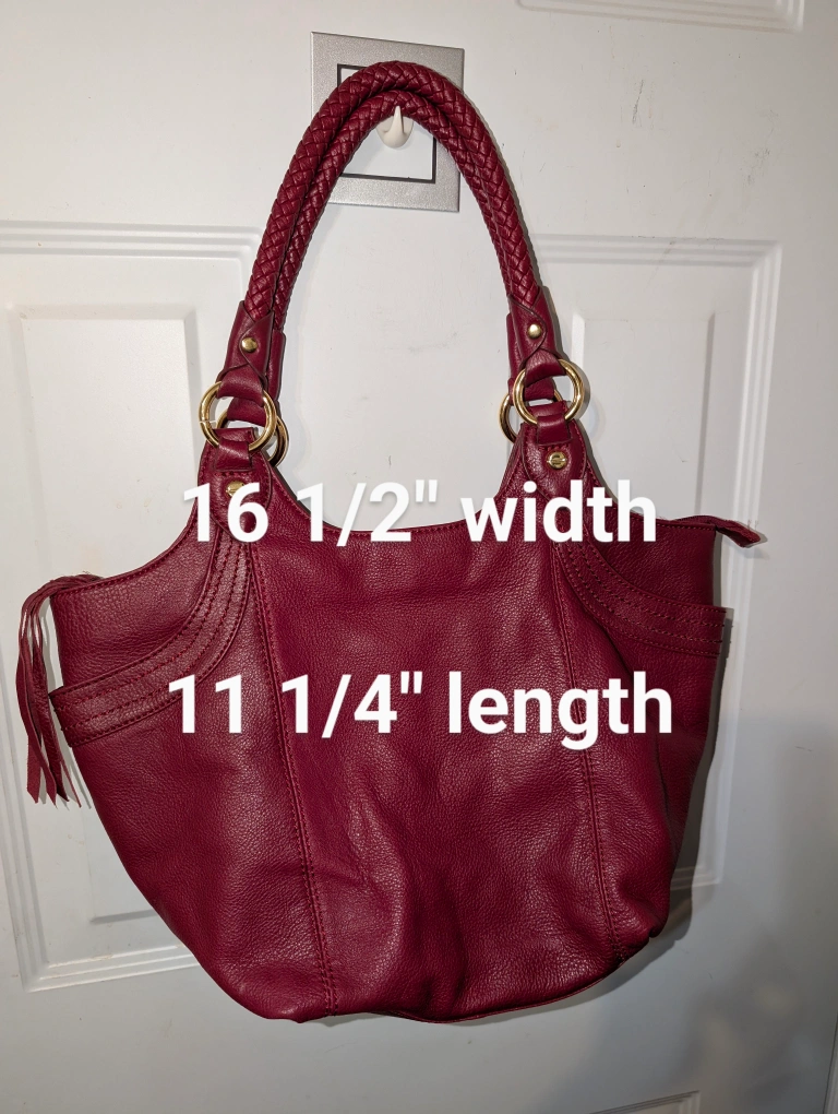 Selling a burgundy leather hobo bag from The Sak! It's in great shape and ready for a new home. The bag is 16 1/2" wide and 11 1/4" in length.