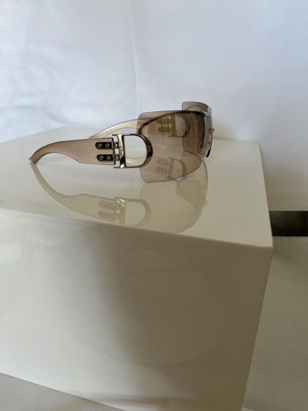 Stylish Dior sunglasses with a shield design! These shades have a unique and fashionable look that will elevate any outfit