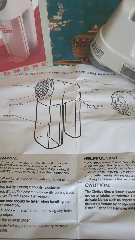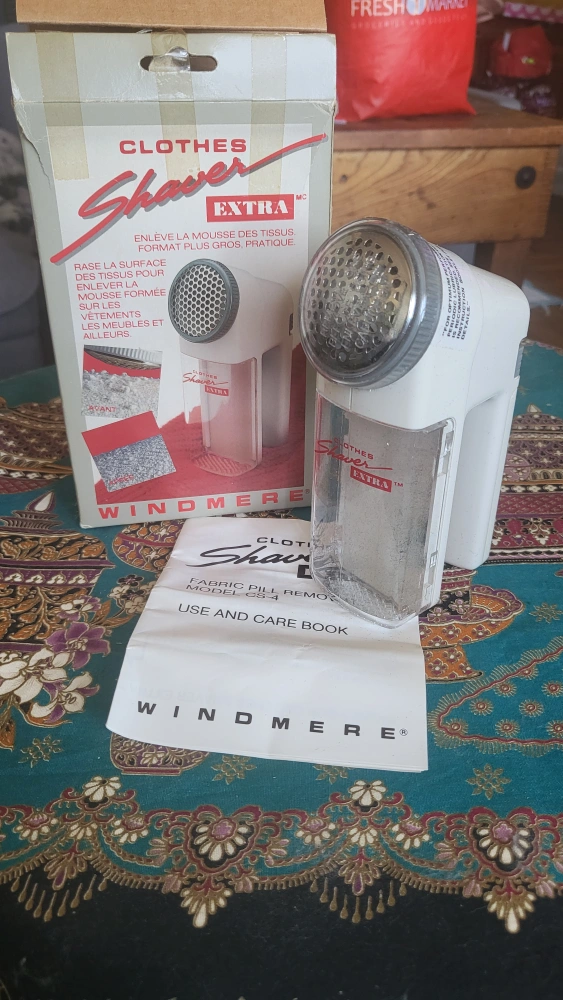 Selling a Windmere Clothes Shaver Extra Fabric Pill Remover! It comes with the original box and use and care book. It's great for removing pills from your favourite clothes and furniture, keeping them looking fresh and new.
