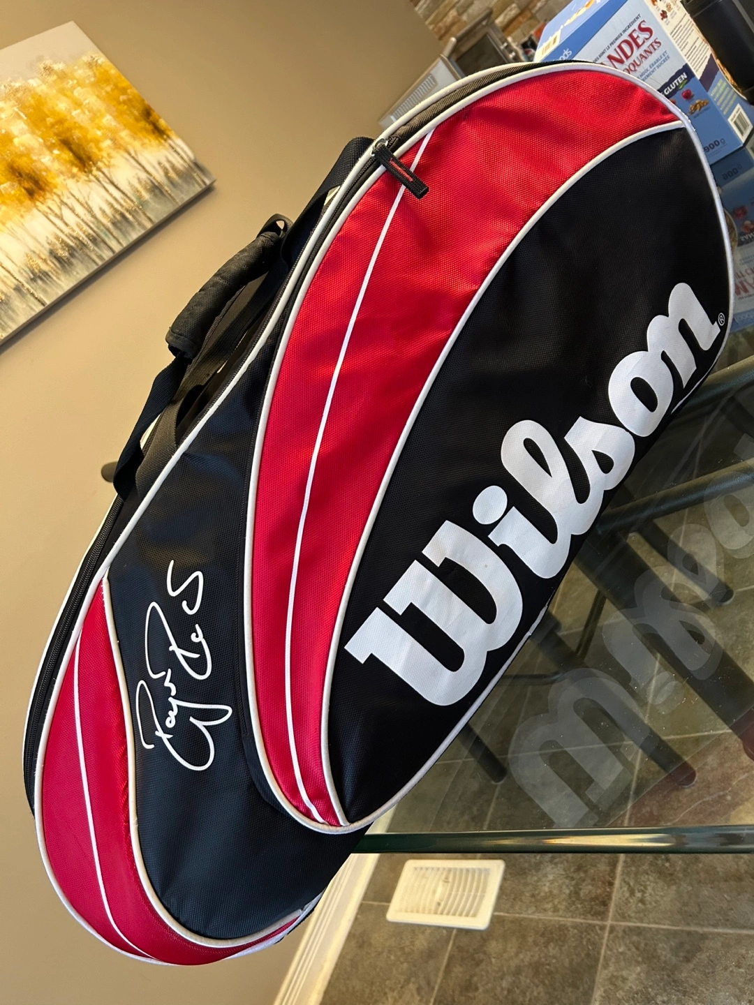 This Wilson Tennis Bag is SuperLite with protective padding on each sides. Minor wear on white Wilson logo, all zippers moving smoothly.