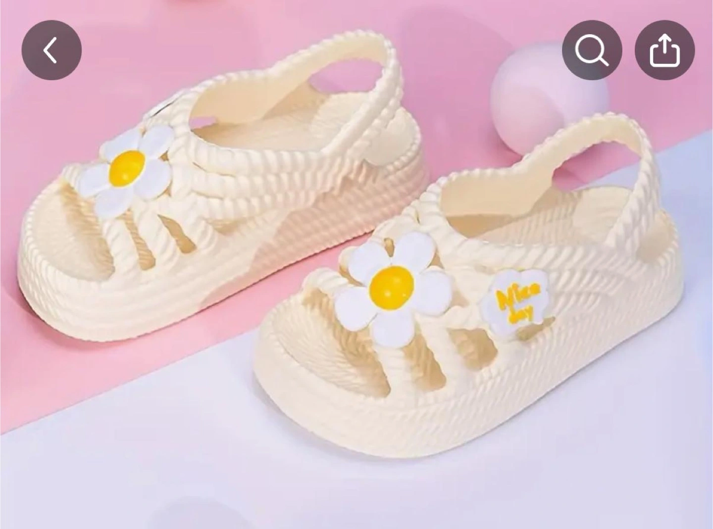 Cute and comfy sandals, perfect for spring and summer! Lovely daisy flower design with “Nice Day” detail.