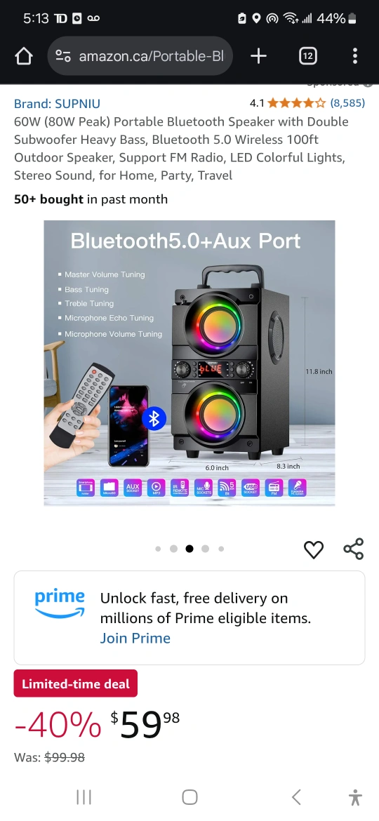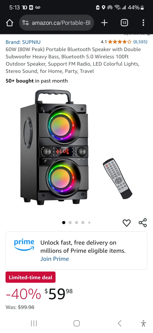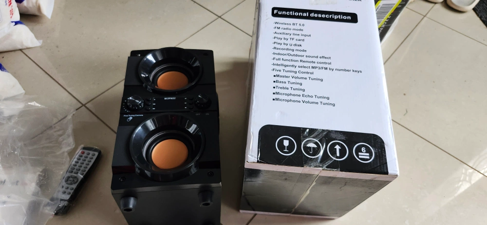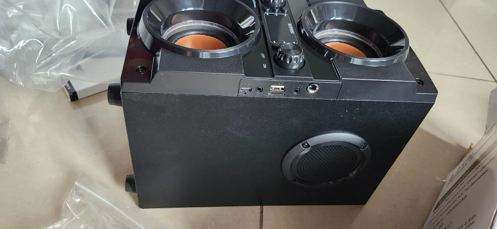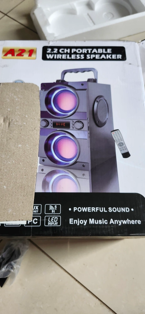 203Selling a SUPNIU A21 2.2 CH portable wireless speaker! It has a double subwoofer and colorful LED lights. Enjoy powerful sound anywhere with this Bluetooth 5.0 speaker. It also supports FM radio and has an aux port. Comes with a remote for easy control